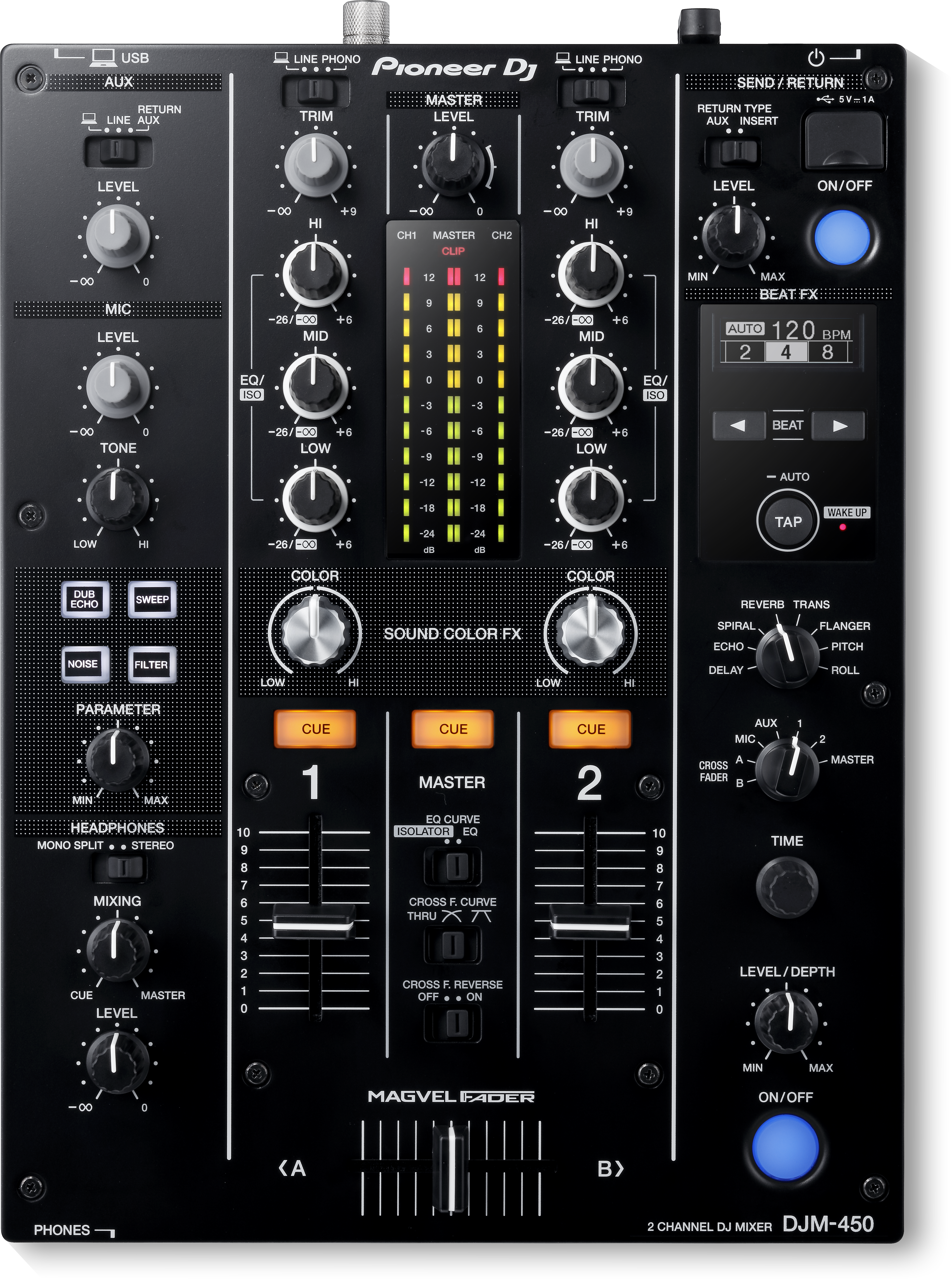 The DJM-450 is compatible with rekordbox, so you can DJ with tracks stored on your PC/Mac when using turntables and our control vinyl (available separately).