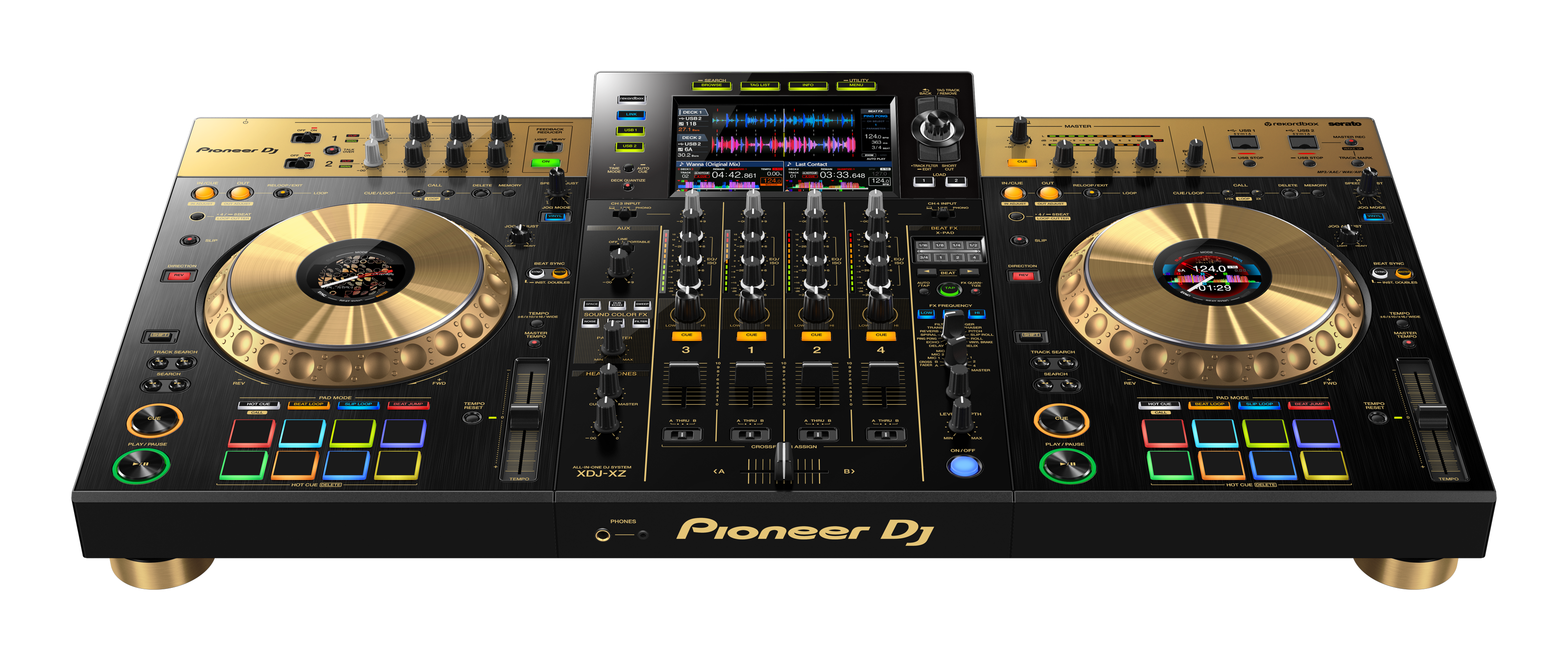 Keep track of all the information you need and focus on your performance. Waveforms, Hot Cues, BPM, and more is displayed via the 7-inch LCD touch screen and the color On Jog Display in the centre of each jog wheel.