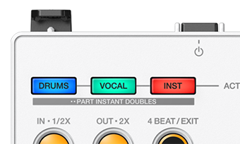 Load the regular songs from your music library and create remixes and mash-ups on the fly by independently manipulating the 3 key parts of the music: vocals, drums, and inst (other instruments including bass and synths). There are dedicated color-coded buttons to control each part, so you’ll always have a clear visual grasp of what’s playing.