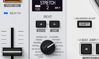 Hit the 8 back-lit rubber Performance Pads to trigger Hot Cues, Pad FX, Beat Jump, and the sampler.