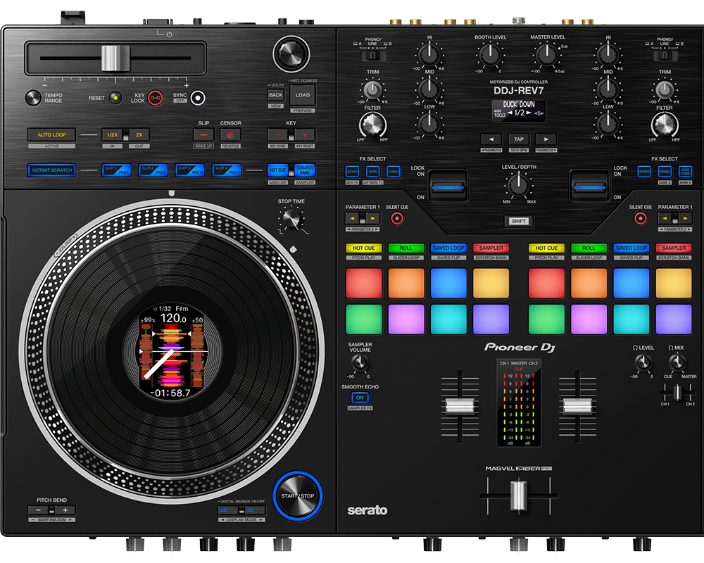 With a digital-to-analog converter from ESS Technologies and improvements to the audio design, the DDJ-REV7 achieves the highest sound quality of any Pioneer DJ controller.