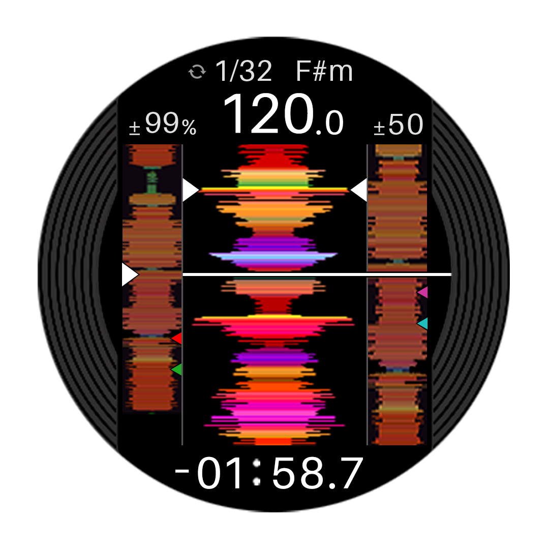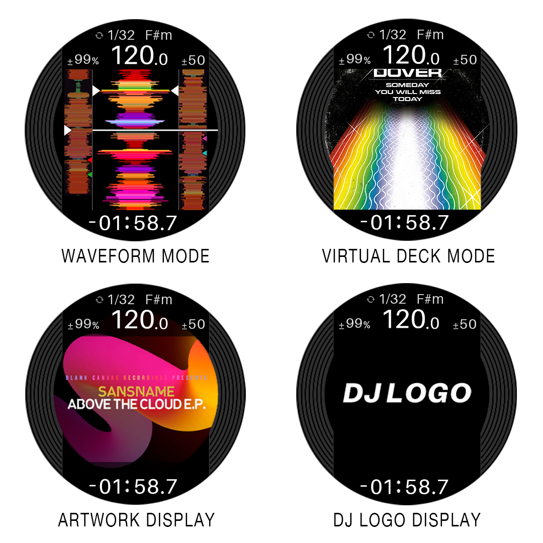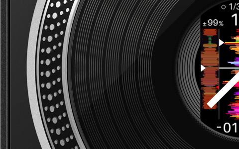 In the center of each jog wheel, a 3.5-inch LCD keeps important information at your fingertips so there’s far less need to switch your gaze between the decks and your laptop. Thanks to an omnidirectional viewing angle, you can see what’s being displayed from any angle, and you can turn off the digital marker that indicates the playback position whenever you want. You can also mark each jog wheel with the included stickers if you prefer this method to the digital marker.