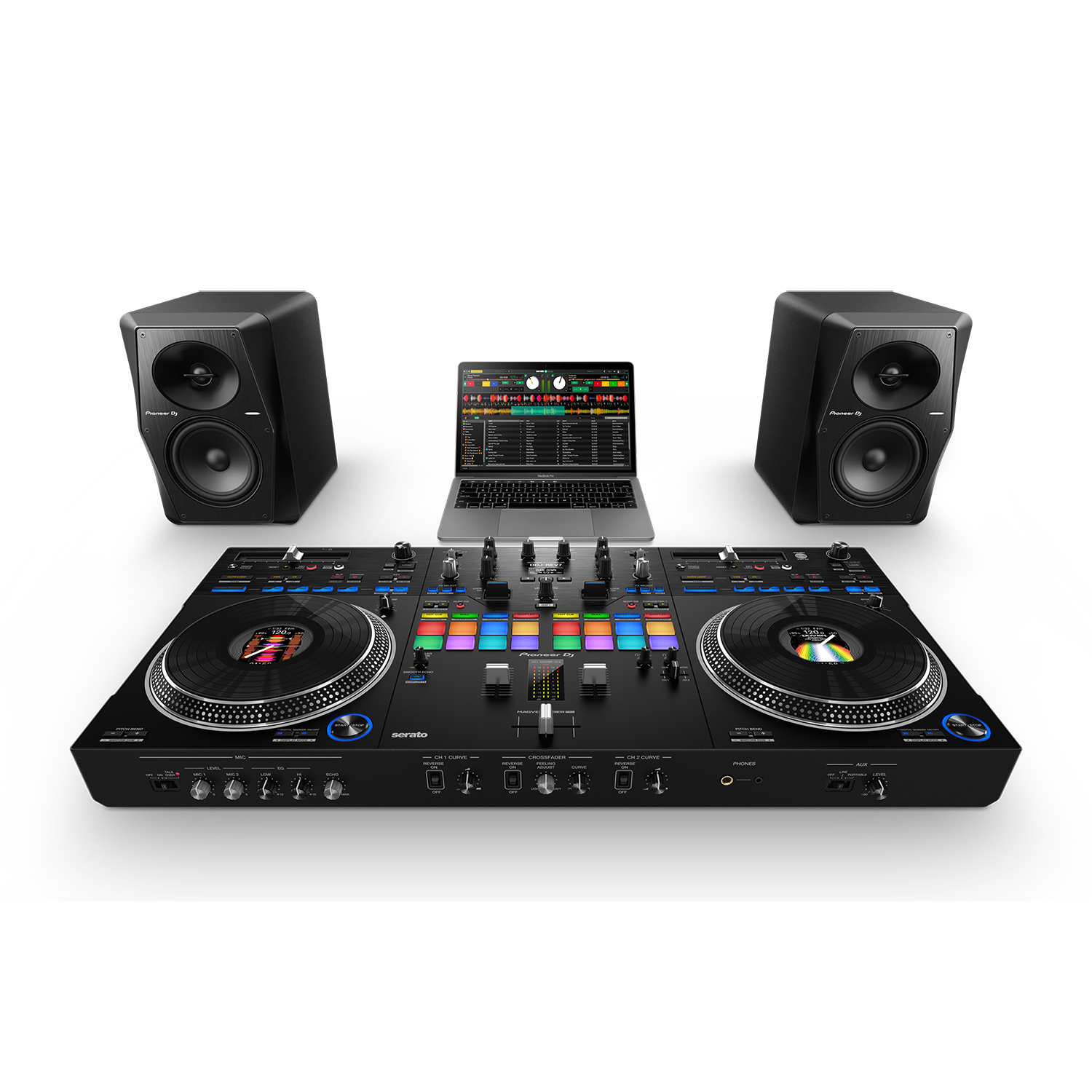 As soon as you’ve downloaded Serato DJ Pro or rekordbox to your PC/Mac, you can simply connect the DDJ-REV7 via the supplied USB cable and start DJing.