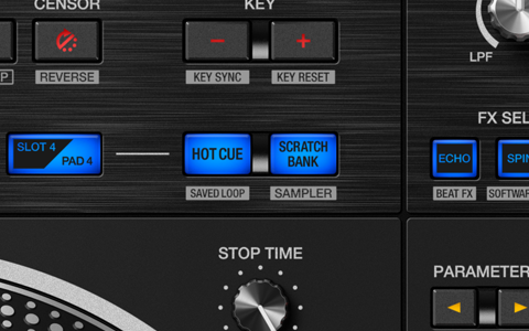 Switch on Silent Cue and avoid the sound of the music speeding up as the platter starts to spin. Simply choose a Hot Cue, then hit play on the deck and it will sound the same as hitting a cue point on a DJ player.