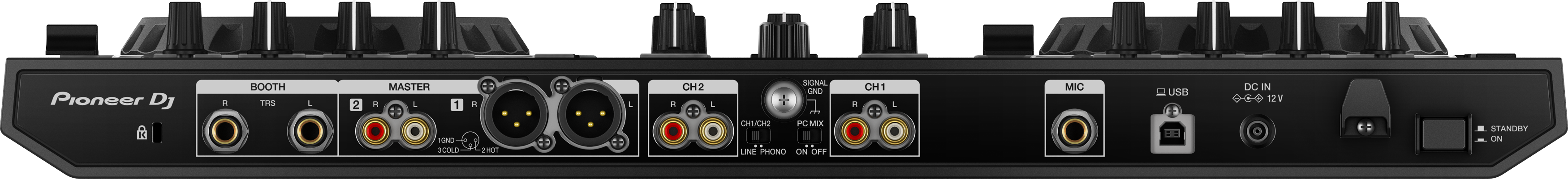 Balanced XLR outputs let you connect to a professional PA system, while a booth and 2 headphone outs allow you to monitor your mixes. Or use the DDJ-RR as a mixer with multiplayers or turntables using the line and phono inputs.