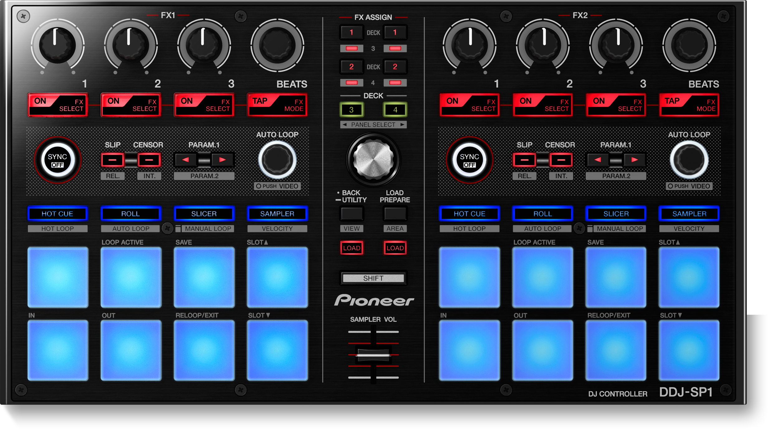 Add the DDJ-SP1 to a set-up that supports mixing and scratching with Serato DJ Pro – for example a laptop, or timecode CDJs/turntables with a DJM-900SRT mixer – and use the pre-mapped buttons and dials to trigger 6 samples, 8 Hot Cues and more than 30 FX Powered by iZotope - without the need to touch a keyboard or mouse.