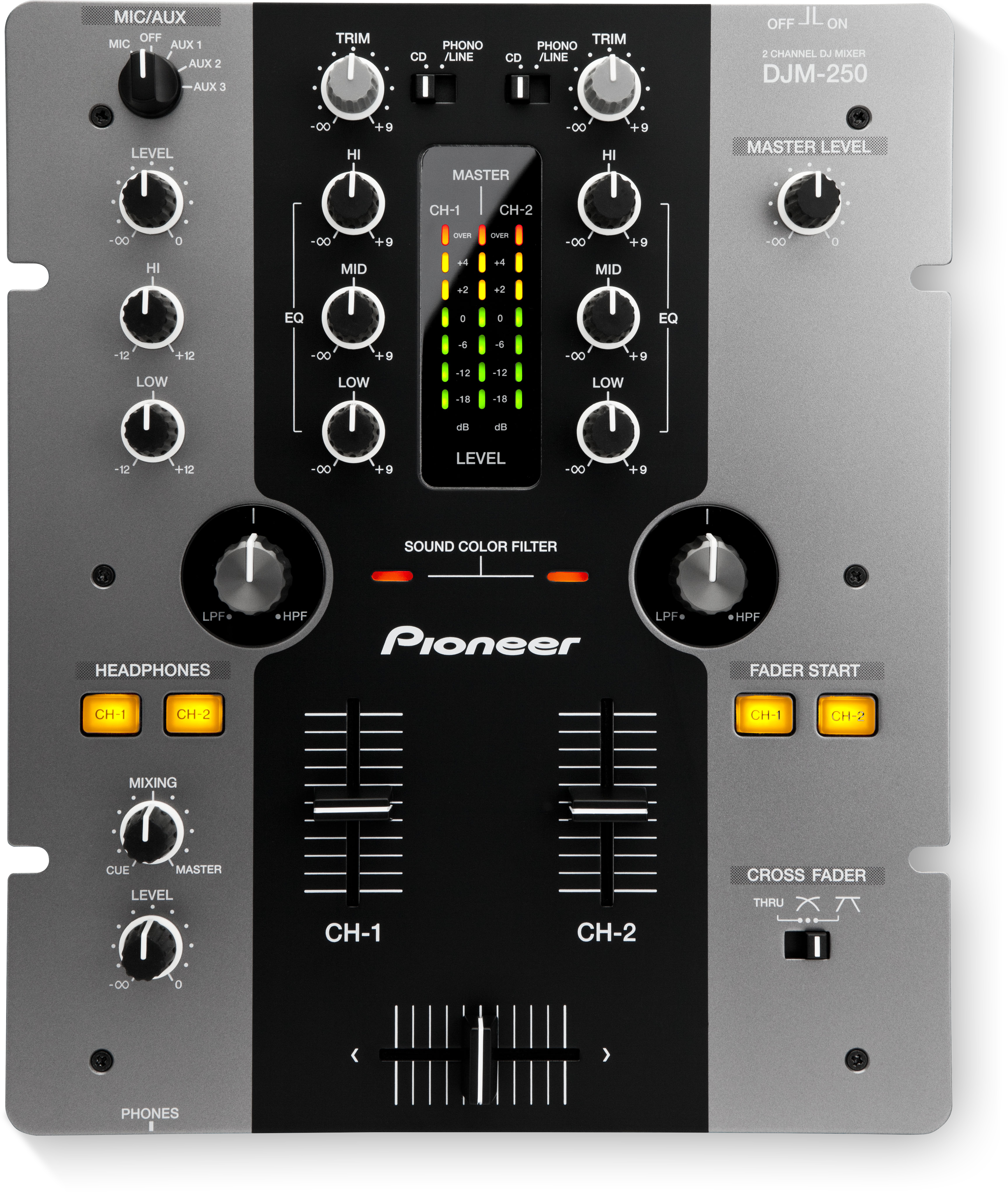 With the DJM-250, you can combine EQ effects with 2 filters to perform mixes that sound like they were meant to be. Add that to the DJM-250’s pro-DJ features and you’ve got a mixer like no other.