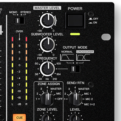 The crossover frequencies of the master and subwoofer output can be adjusted with a single knob, enabling optimum bass balance between the speakers and subwoofers at any venue.