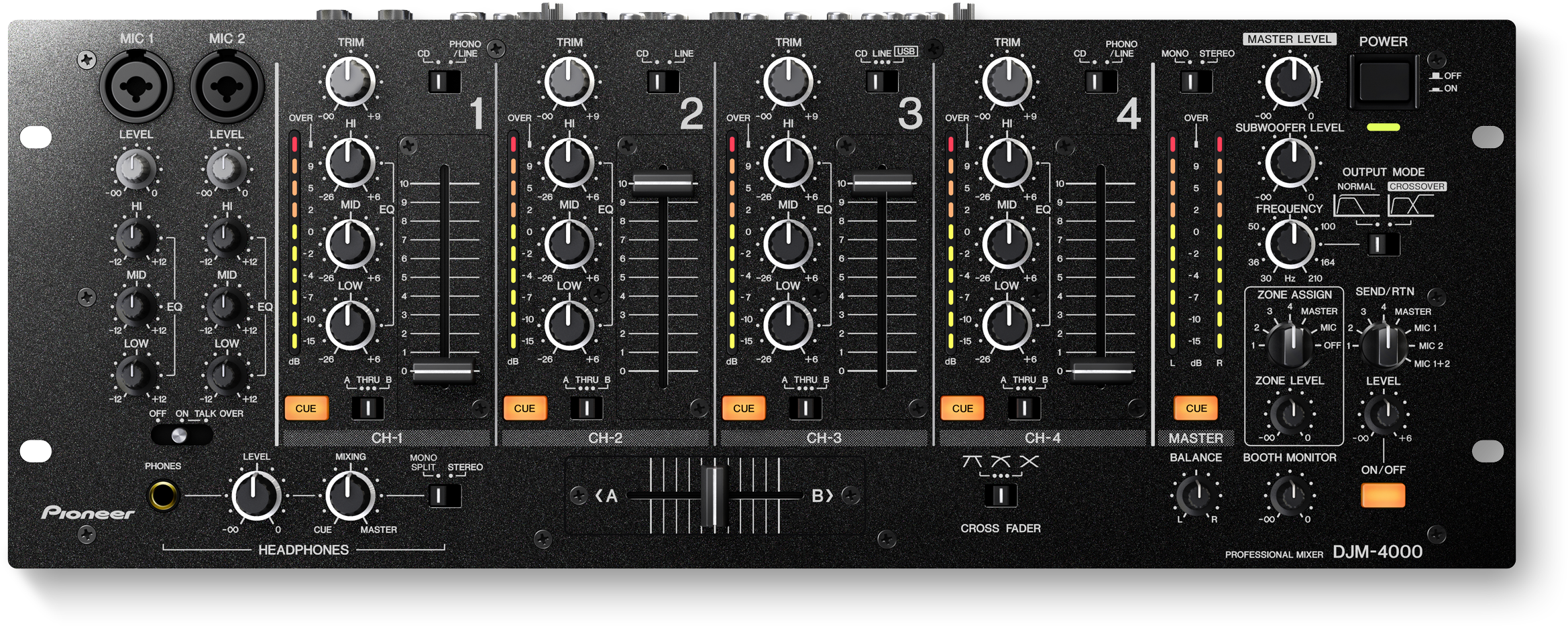 The DJM-4000 4-channel mixer boasts several standout innovations that place a premium on DJ dynamism, usability and professional style.