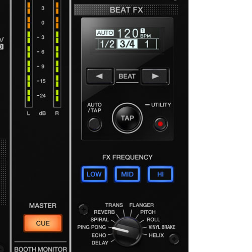 Add texture and flair to your mixes with professional FX inherited from the DJM-900NXS2. 2 effects units combine Sound Color FX and Beat FX – including FX Frequency – giving you the freedom to be creative with sound while always in control.