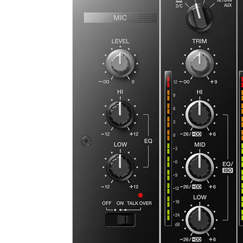 The EQs and channel faders on the DJM-750MK2 feature curves equivalent to those on the DJM-900NXS2, which also inspired the Magvel cross fader. The latter is smooth, accurate and durable for more than 10 million movements and its cut lag has been improved for more assured and responsive performance