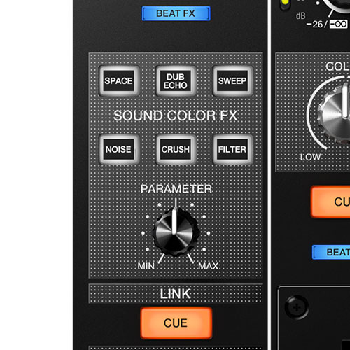 6 studio-quality sound FX - Sweep, Filter, Crush, Dub Echo, Noise and Space - are available on every channel. Use the parameter control knob to fine-tune the FX.