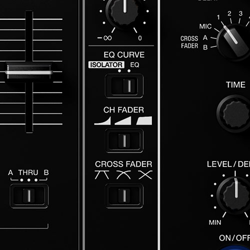Use the improved EQ to balance the high, mid, and low frequencies on every channel. Choose your preferred channel fader curve pattern for the perfect mix.