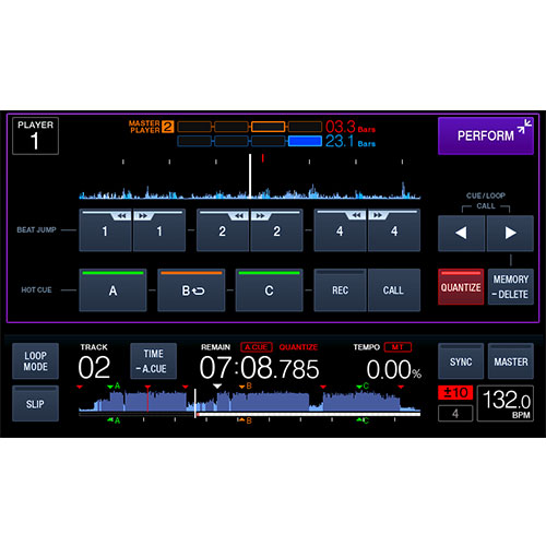 The large, full-colour LCD screen shows all the info you need, including Wave Zoom, beat countdown, phase meter, key analysis indicator and more.