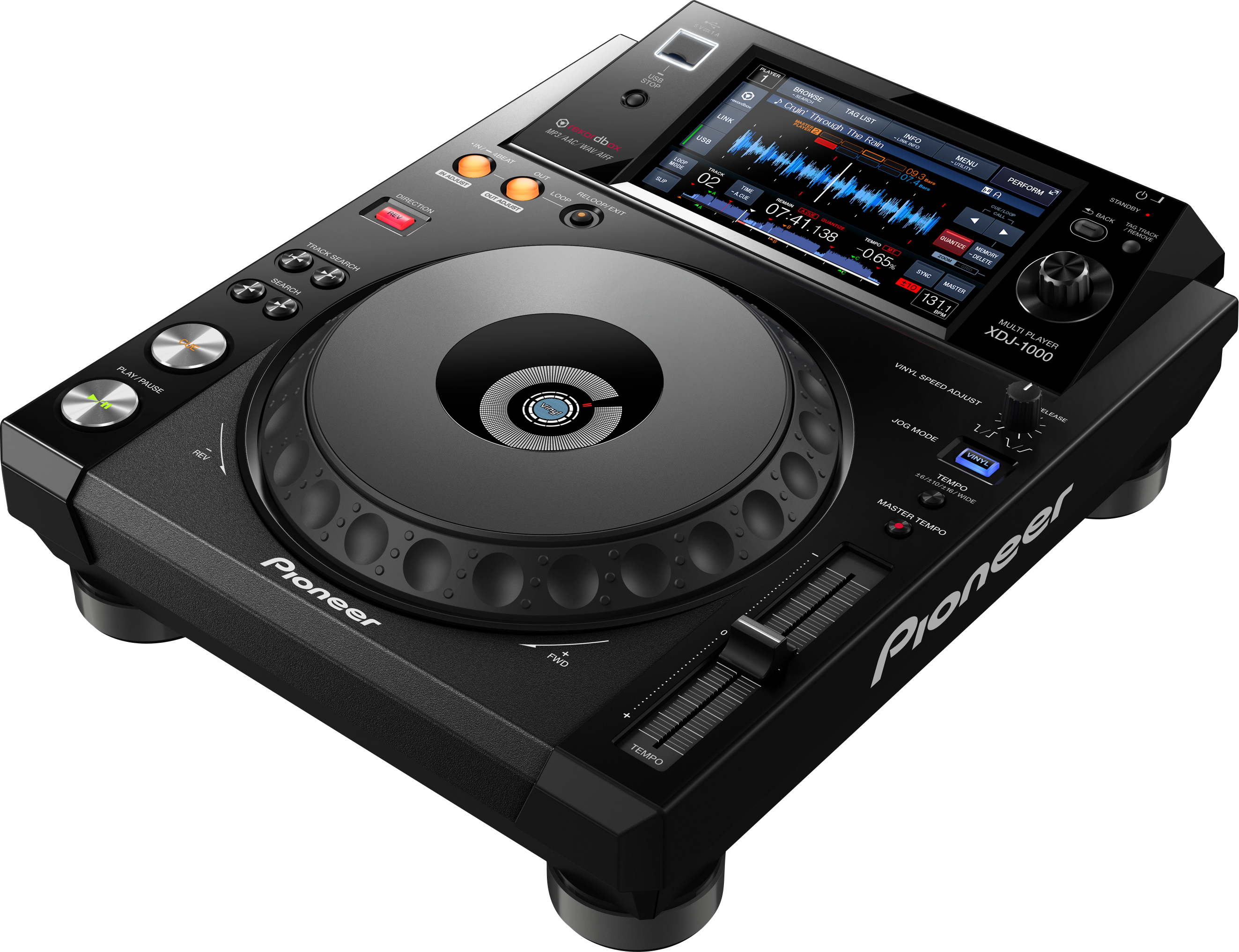 The first of our digitally focused, rekordbox-ready players, the XDJ-1000 has a colour touch screen, a familiar club layout and a host of pro-DJ performance features – all at an affordable price. Use the free rekordbox™ software to manage and prepare your tracks on your PC or Mac – adding cues, loops and more – and use the player’s host of features to be creative on-the-fly.