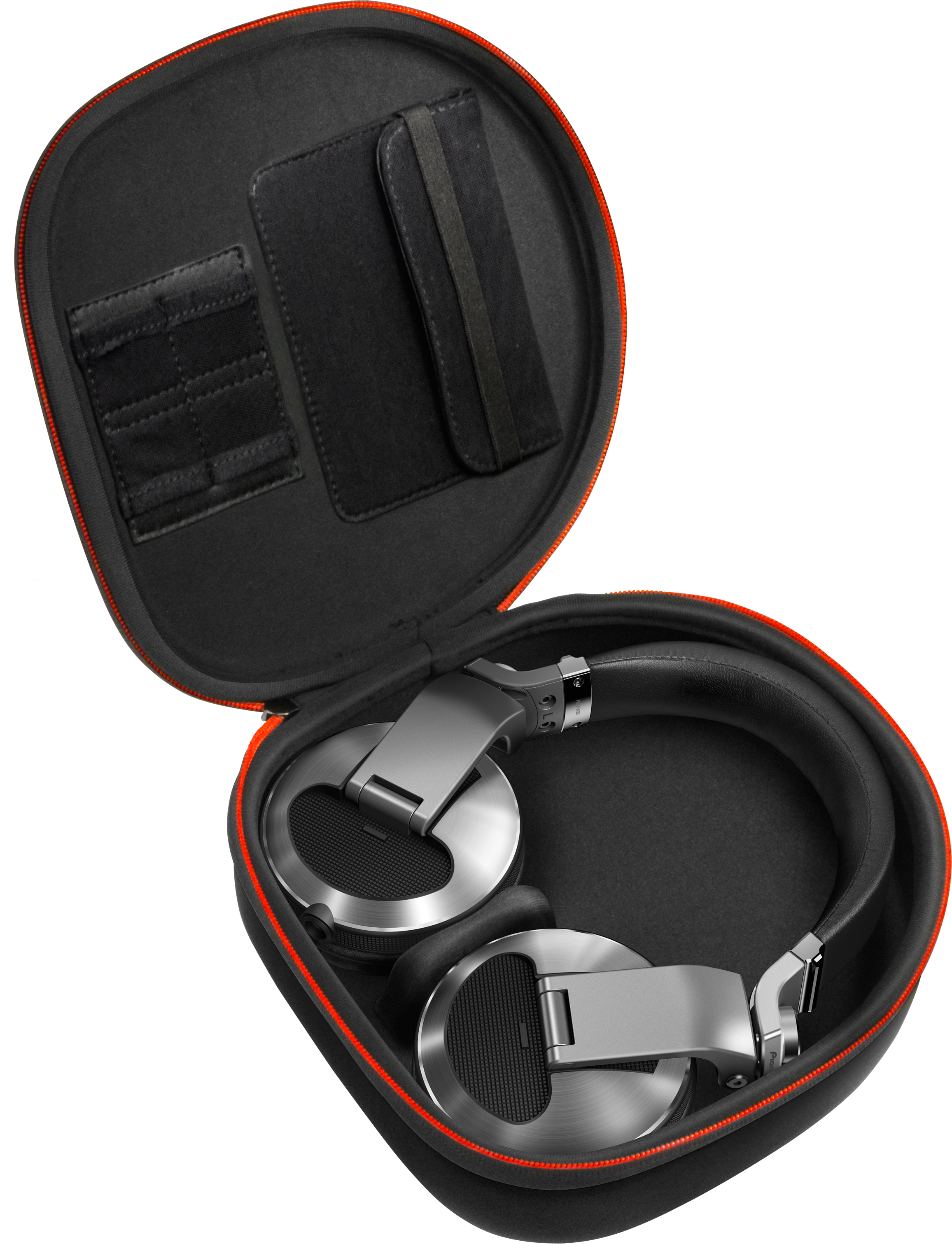 A flat carry case designed to easily fit in travel bags protects your headphones from any damage on the road and provides room to store USB devices and SD cards.
