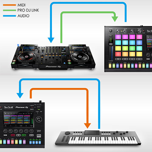 Connect compatible devices via PRO DJ LINK and the sampler will snap your one-shots and loops to the beat of the master deck1. A MIDI clock also lets you connect other devices via USB and stay in sync.