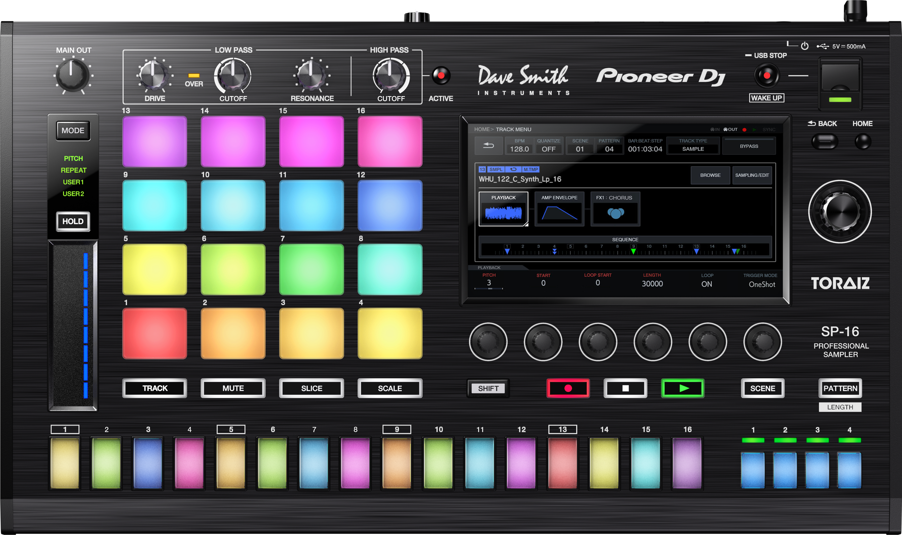 The TORAIZ SP-16 sampler and step sequencer is the first in our line-up of music production tools for DJs and producers. We’ve partnered with the legendary synth creator Dave Smith to add his Prophet-6 analogue filters, so you can give your creations a rich, analogue warmth and presence.