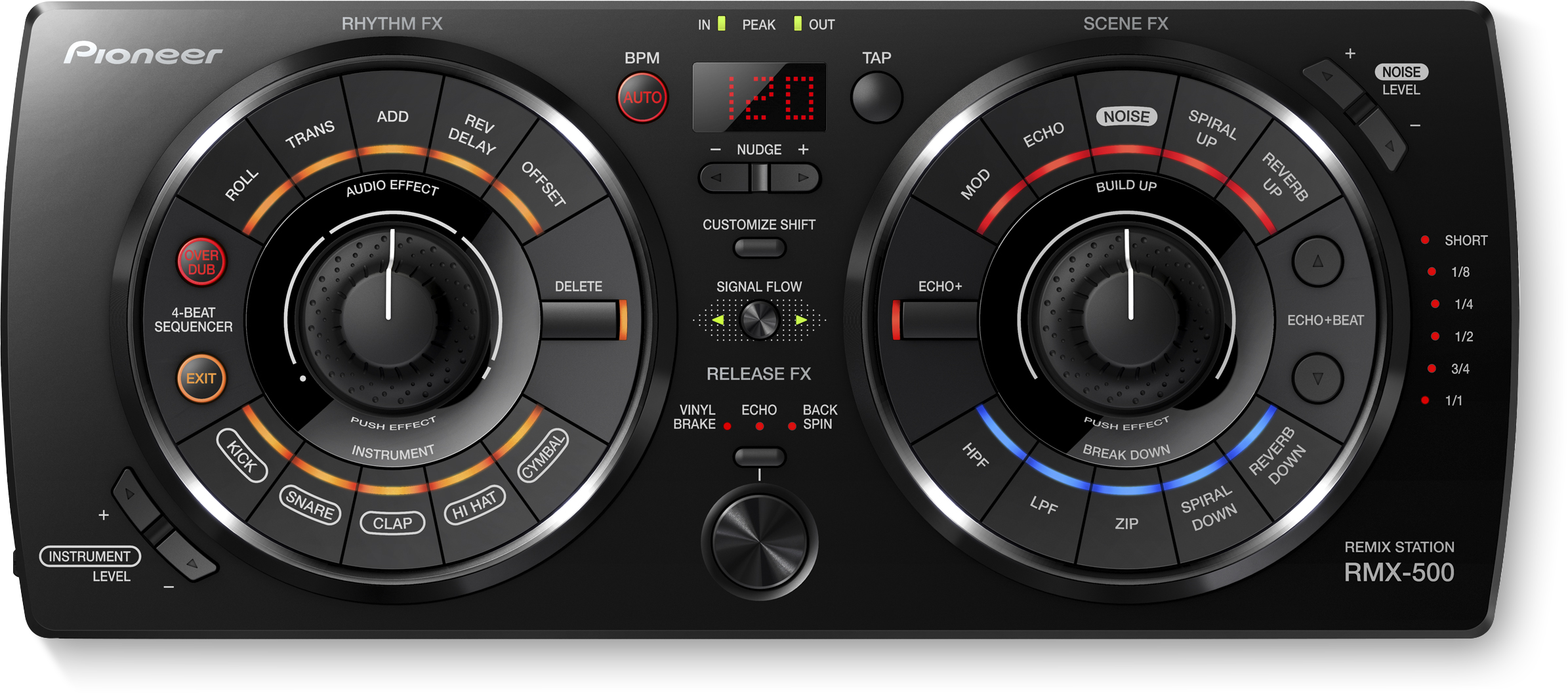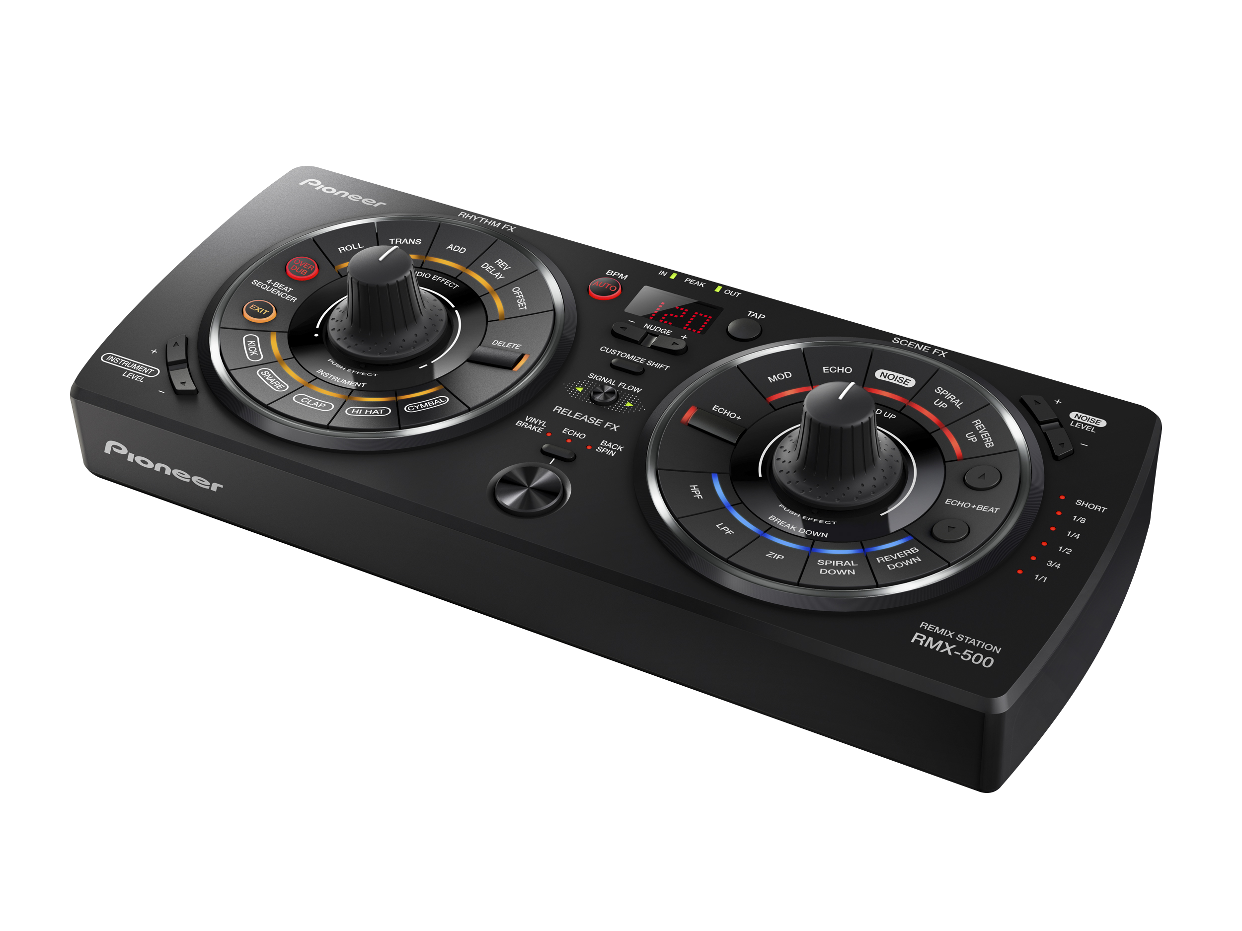 Pioneer DJ presenta quella che è in assoluto l'unità multieffetti più semplice da usare: l'accattivante REMIX-STATION 500 (RMX-500). Questa effettiera leggera riprende alcune delle migliori caratteristiche del modello di prima categoria RMX-1000, vantando però una configurazione semplificata, personalizzazione on-board e ingegnosi comandi controllabili con una mano sola per la gestione di svariati parametri.