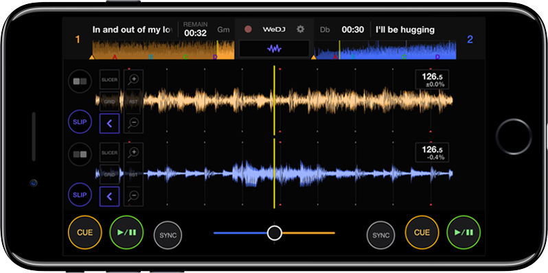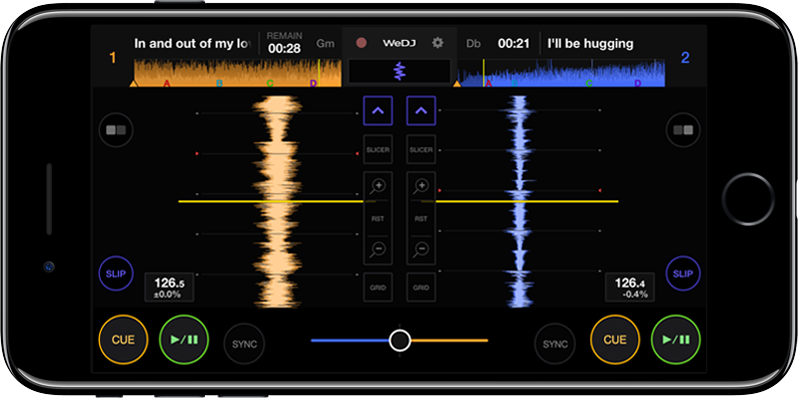 I nuovi controller DDJ-WeGO4 e DDJ-WeGO3 sono i compagni ideali di WeDJ: una volta collegato, il display di WeDJ si trasforma in un'interfaccia dedicata ottimizzata per l'utilizzo con l'hardware. Puoi usufruire del controllo tattile delle funzioni di WeDJ toccando le jog wheel, i fader e i pulsanti del DDJ. Informazioni dettagliate quali gli effetti avviati vengono mostrate nello schermo dell'iPhone. - Layout flessibile