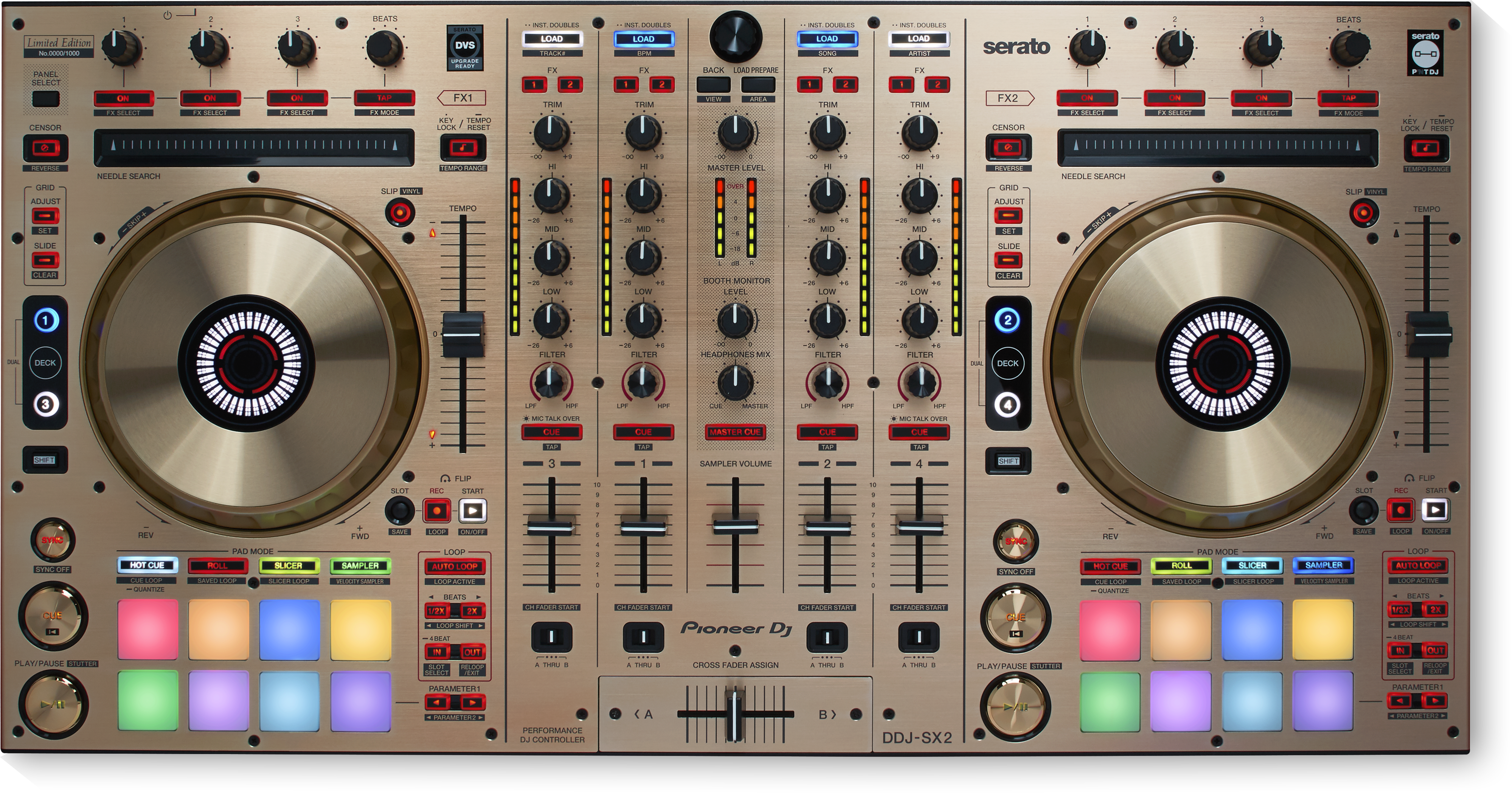 In uscita una nuova ed esclusiva versione del nostro controller per il software Serato DJ con stupende rifiniture in oro. La produzione del DDJ-SX2-N a 4 canali Serato DVS Upgrade Ready si limiterà rigorosamente a sole 1000 unità, ciascuna impreziosita da una targa su cui è inciso un numero di serie unico, per creare un set-up DJ unico nel suo genere.