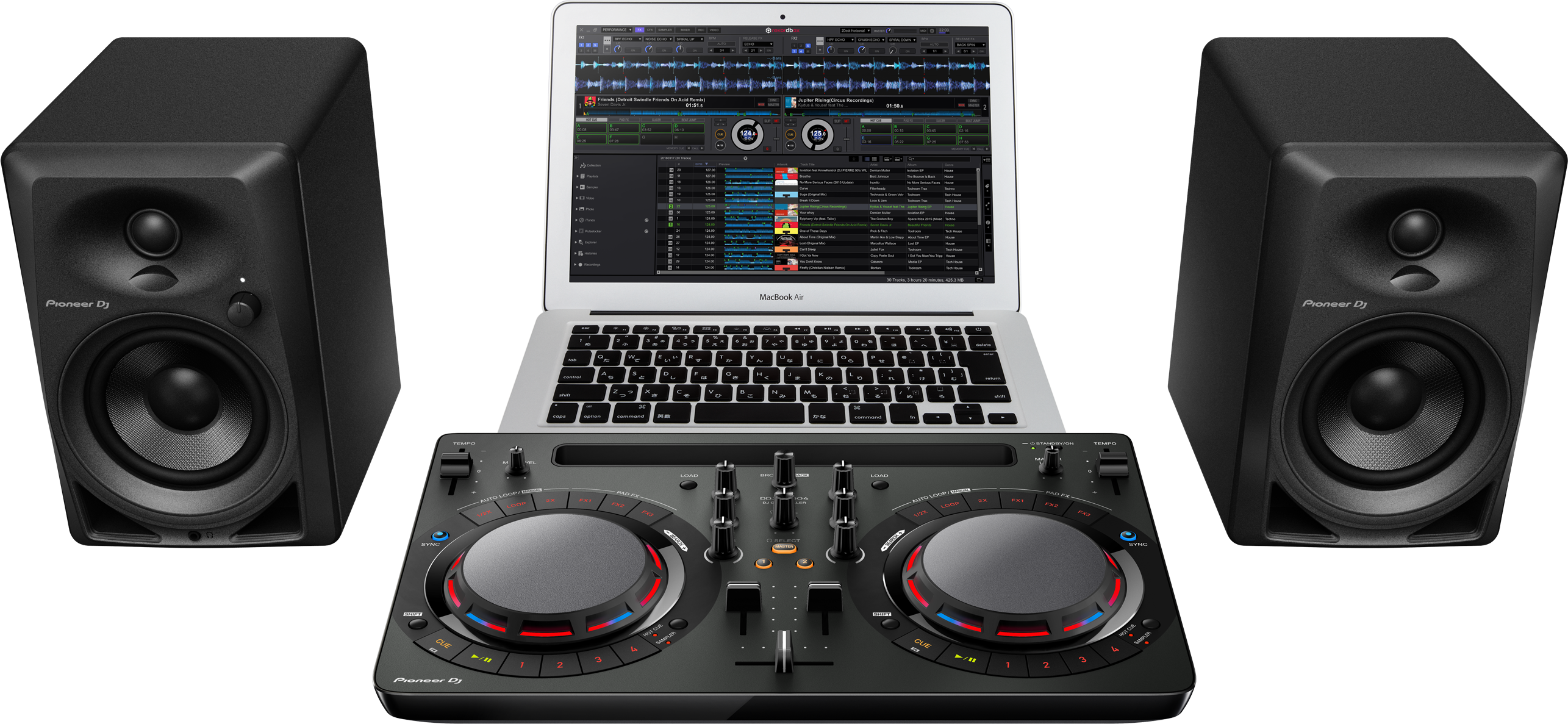 - il rekordbox dj software Plus Pack per gestire la musica, preparare i brani ed eseguire i set;