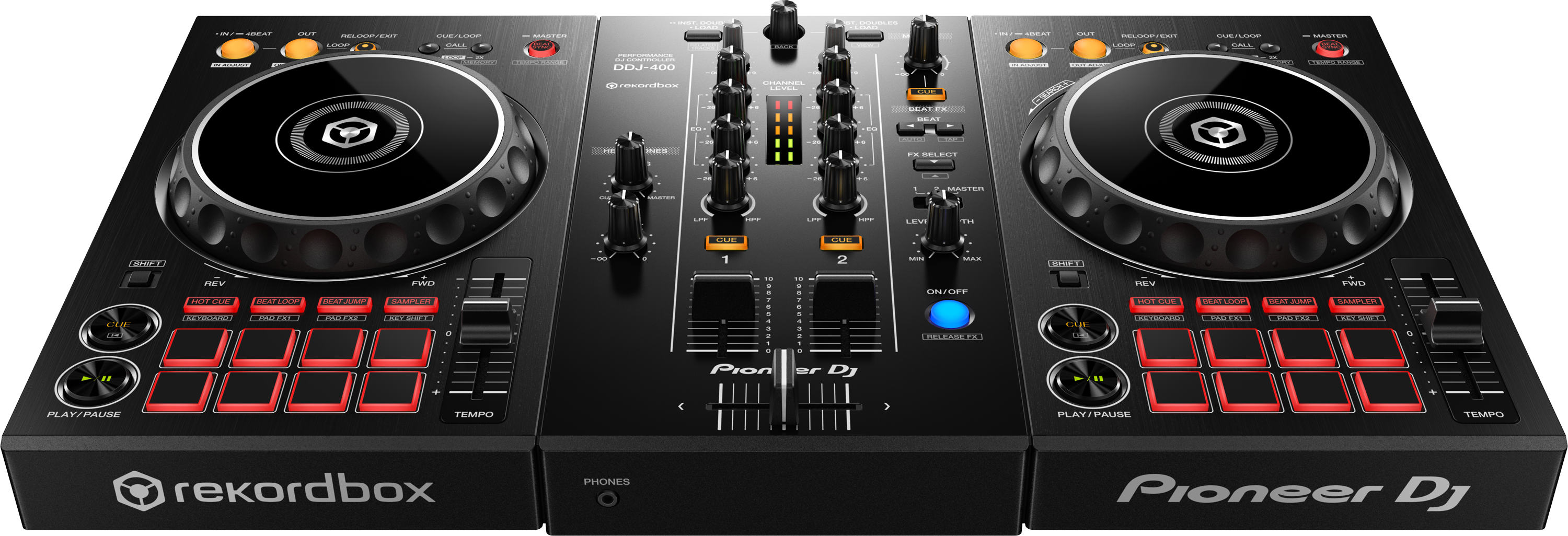 Grazie al design leggero e alla facile trasportabilità, puoi spostare il DDJ-400 ovunque; in casa di amici per esercitarvi insieme, feste private, sale o piccoli eventi. E se vuoi passare al livello successivo, mixare diventerà facile anche nella cabina DJ di un club, poiché il DDJ-400 eredita tratti e design dalla nostra gamma professionale. Il layout dei pulsanti dedicati play/ pause e cue, Beat FX, controlli looping stile CDJ e altro ancora, è lo stesso dell’NXS2.