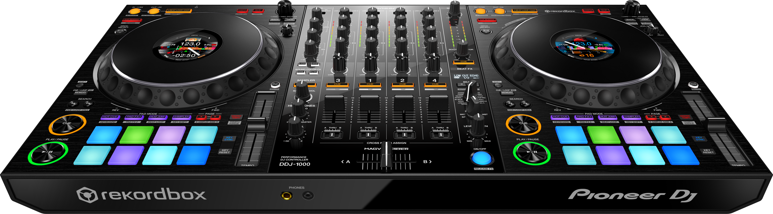 Il DDJ-1000 rappresenta la soluzione ideale se si desidera suonare ad eventi e feste diverse dai semplici locali, grazie alla sua facile portabilità e alla nuova interfaccia utente molto simile alla configurazione club-standard del noto multiplayer/DJM. Le sue caratteristiche professionali comprendono le jog wheel full size ereditate dal CDJ-2000NXS2 con l'aggiunta di On Jog Display in modo da poter tenere d'occhio importanti informazioni sui brani senza dover guardare il laptop. Per conferire un tocco creativo ai tuoi mix con 14 Beat FX, usa i 16 Performance Pad multicolori (8 per piano) e attiva varie funzioni tra cui Hot Cue, Pad FX e Keyboard Mode, che permettono di suonare un Hot Cue in diversi semitoni. Sarà quindi possibile improvvisare con i suoni e creare frasi musicali come se si stesse suonando sulla tastiera di un sintetizzatore o di un altro strumento.