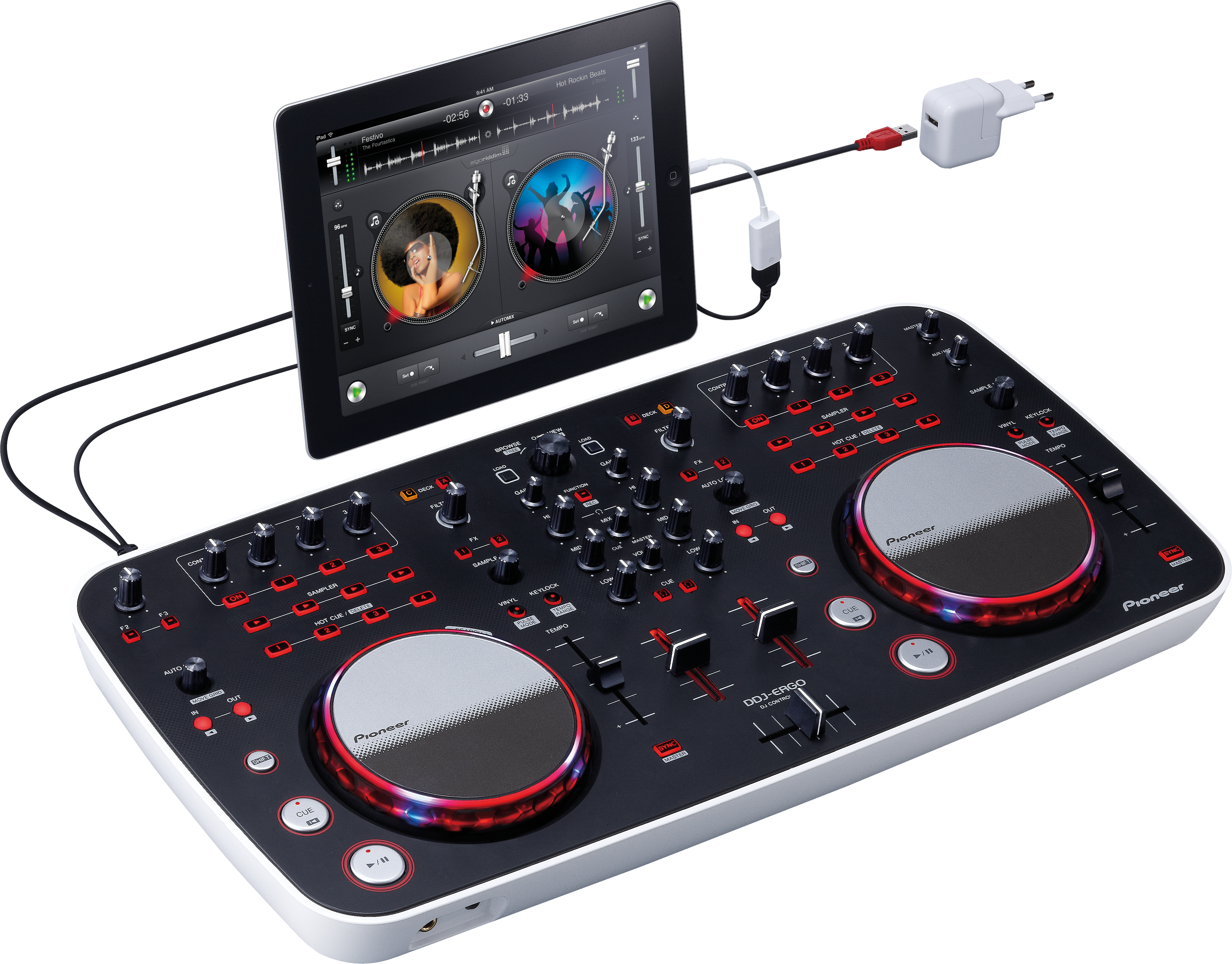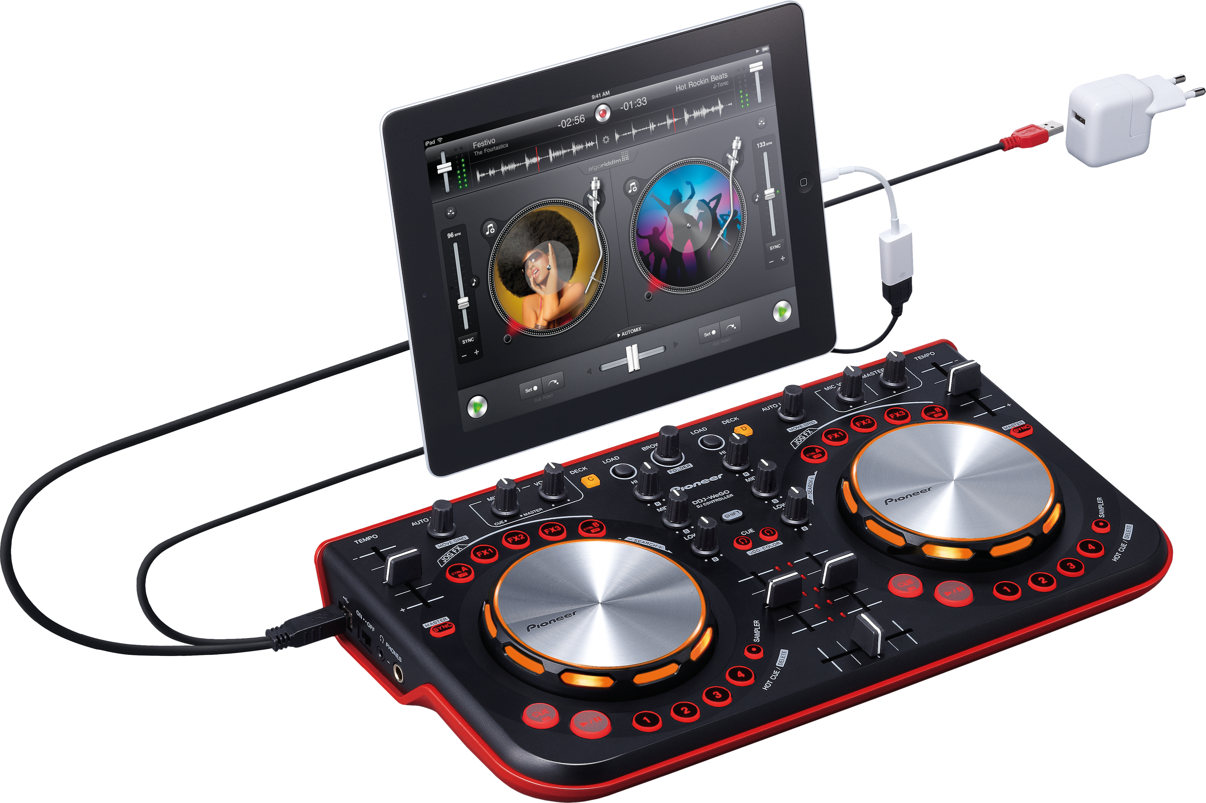 Utilizza il cavo WeCAi per collegare i modelli DDJ-WeGO o DDJ-ERGO alla libreria iTunes su dispositivo mobile dotato dell'app djay 2 di Algorridim oppure cimentati con il mixaggio video utilizzando l'applicazione vjay di Algorridim.