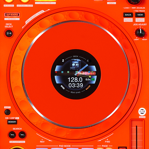 Gli schermi LCD a colori personalizzabili On Jog Display si trovano al centro di ogni jog wheel, mostrando solo le informazioni che ti servono: BPM, forma d'onda, posizione di riproduzione, punti di Loop o Hot Cue.