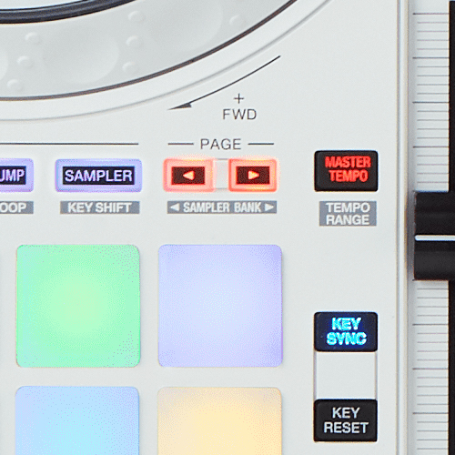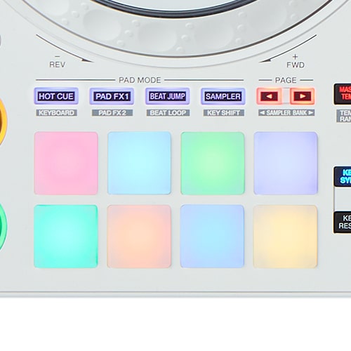 Premi i 16 Performance Pad retroilluminati di gomma per avviare, con un semplice tocco, Hot Cues, Pad FX, Beat Jump, Sampler, Keyboard Mode, Beat Loop e Key Shift.