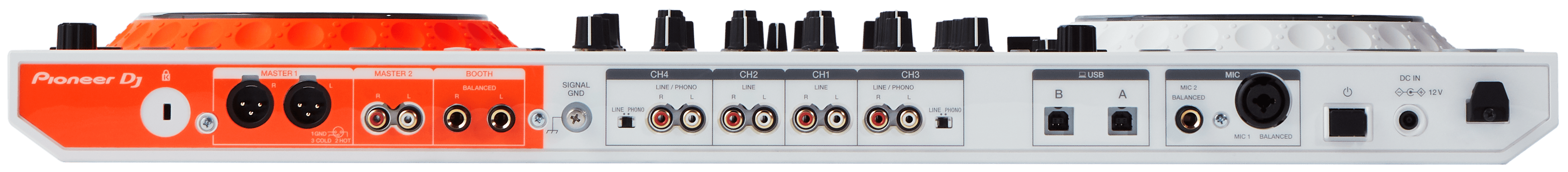 Questo console offre una flessibilità estrema grazie ai 4 ingressi di cui è dotato, che ti permettono di collegarlo ai giradischi analogici o CDJ e di utilizzarlo come mixer indipendente. Un'uscita console, 2 uscite master e 2 ingressi MIC consentono poi il collegamento diretto ad apparecchiature PA professionali.