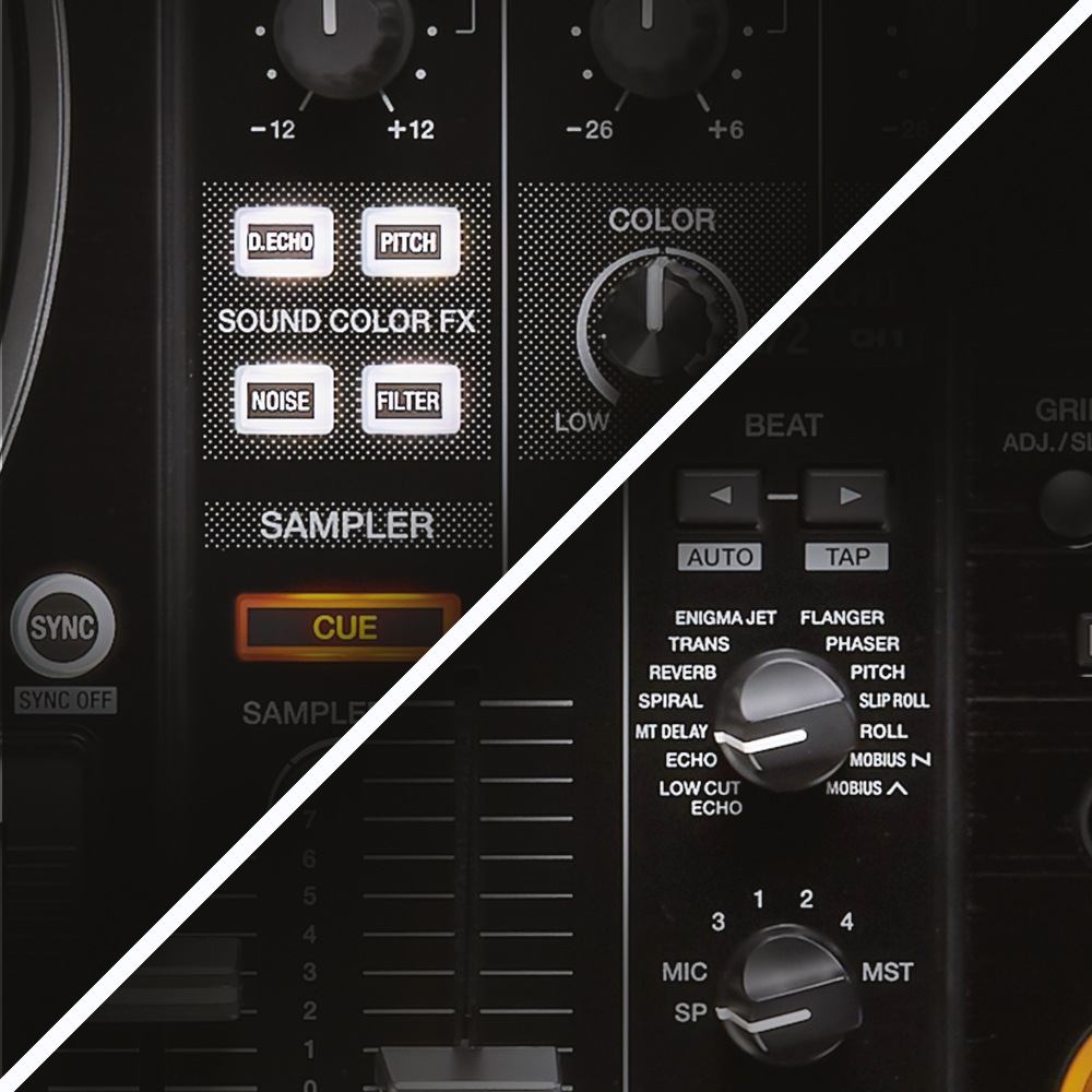 Hit the 16 back-lit rubber Performance Pads to trigger Hot Cues, Rolls, Slicer, Sampler, and Pitch Play at a touch.