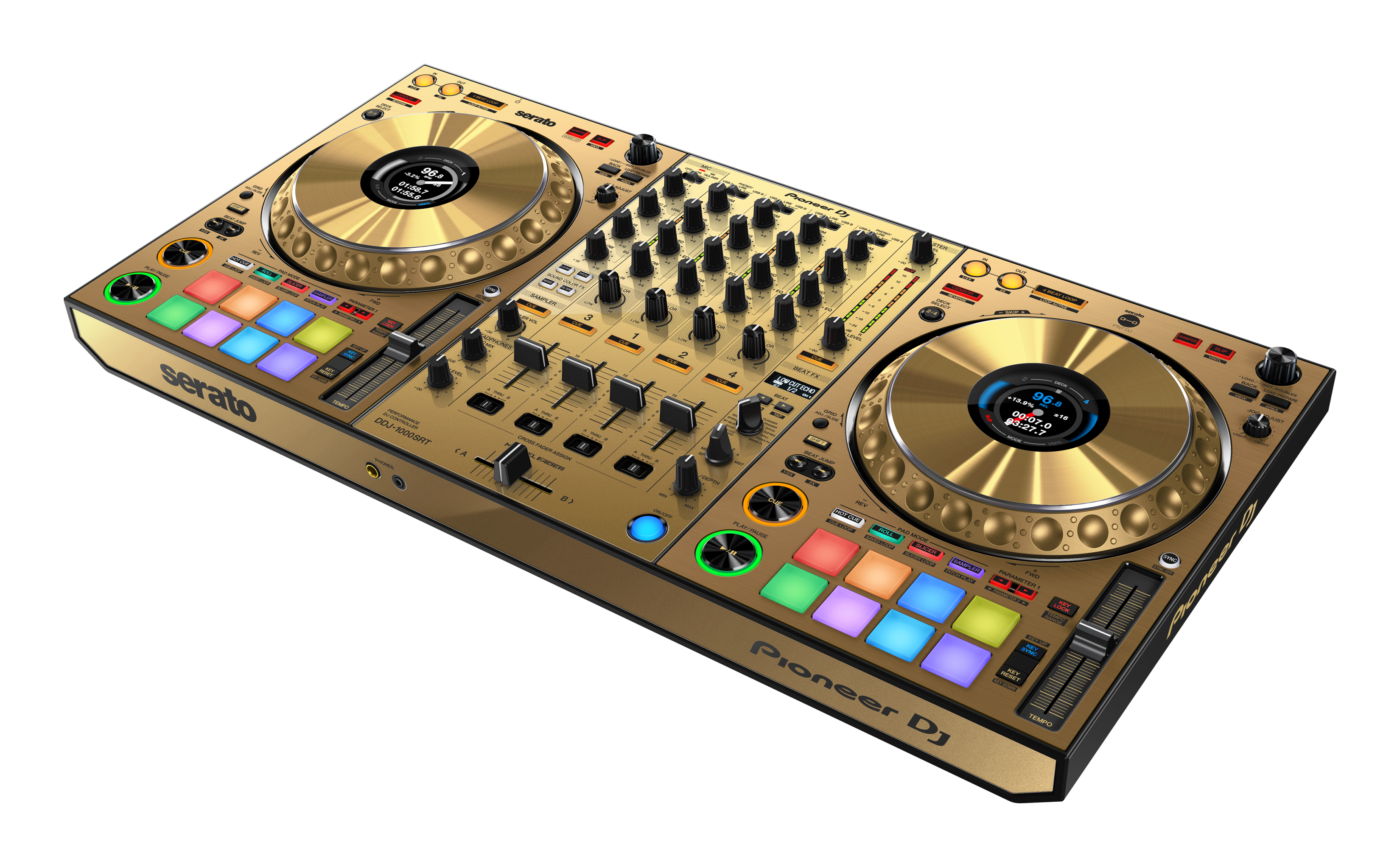 The Serato-compatible version of our popular DDJ-1000 is here – meet the DDJ-1000SRT. This 4-channel DJ controller for Serato DJ Pro is designed to feel just like our club-standard CDJ+DJM setup. You’ll enjoy low-latency, full-size jog wheels and a slick MAGVEL FADER for tight scratching. The limited-edition DDJ-1000SRT-N is only available at specific retail stores in Asia Pacific, the Americas and Latin Americas – not available in Japan, China and EMEA regions.