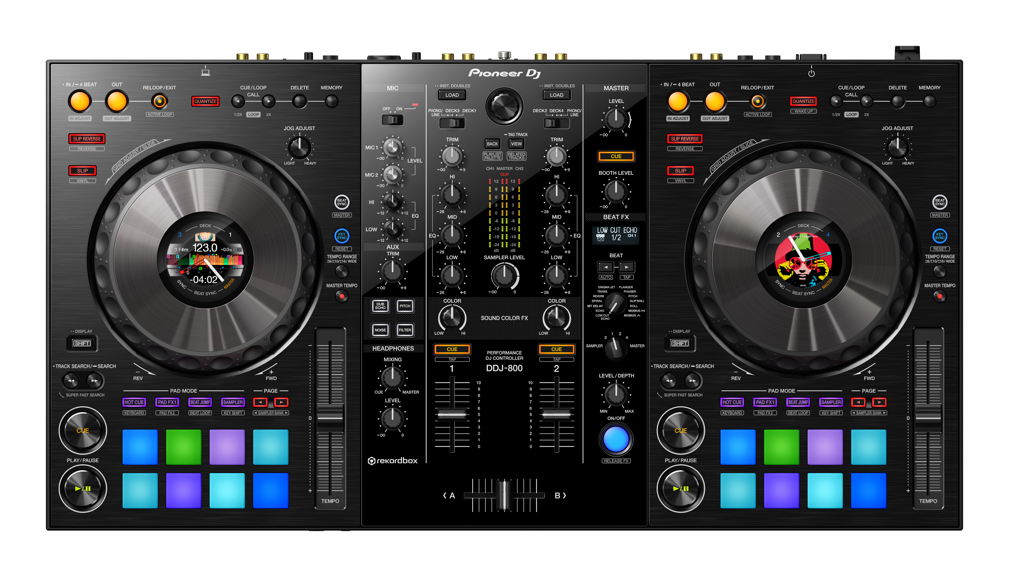 Tieni gli occhi puntati sul deck e non sul computer, grazie all'On Jog Display LCD a colori personalizzabile che si trova al centro di ogni jog wheel. Rivela solo le informazioni che ti servono, che si tratti di BPM, forme d'onda, posizione di riproduzione o punti di Loop e Hot Cue.