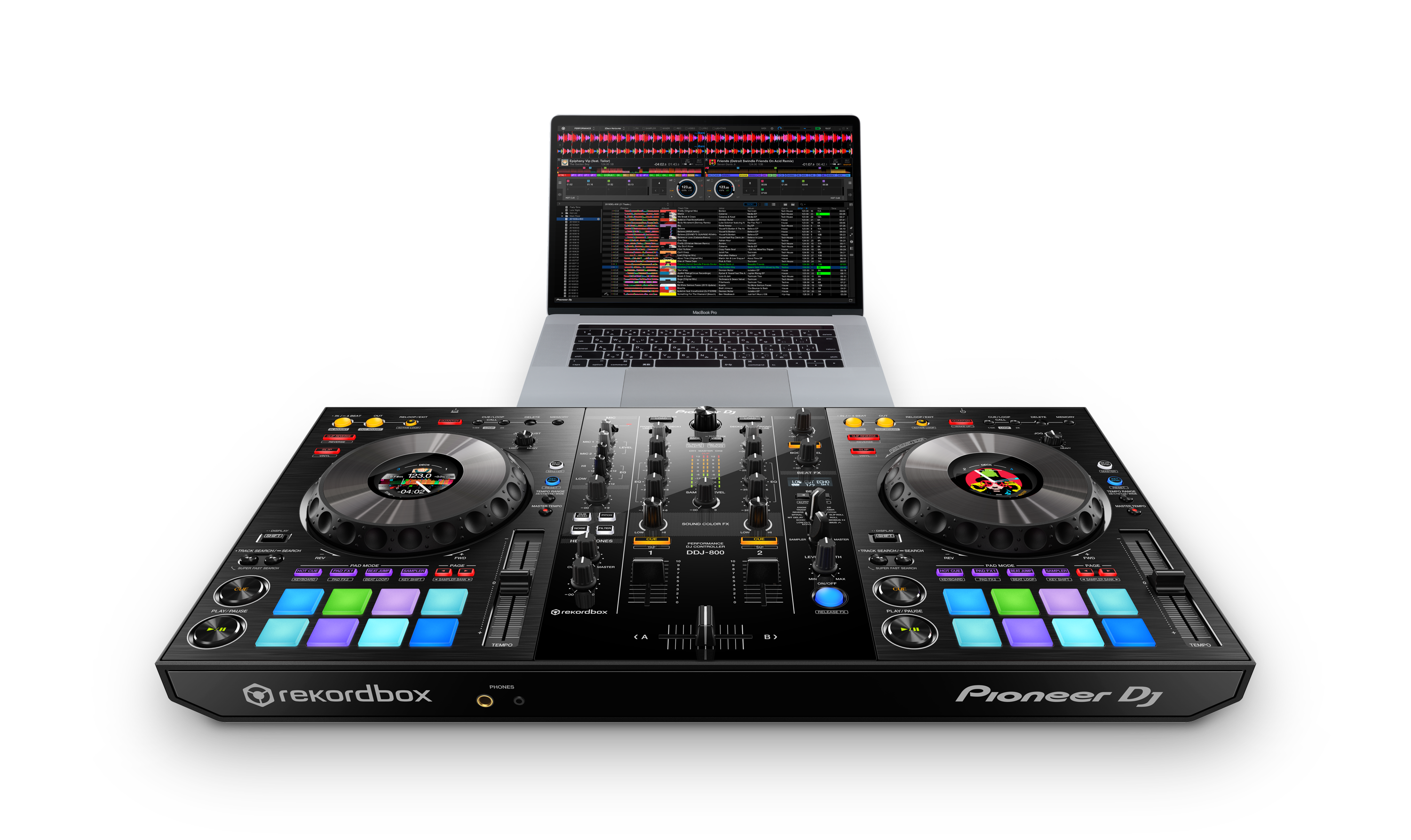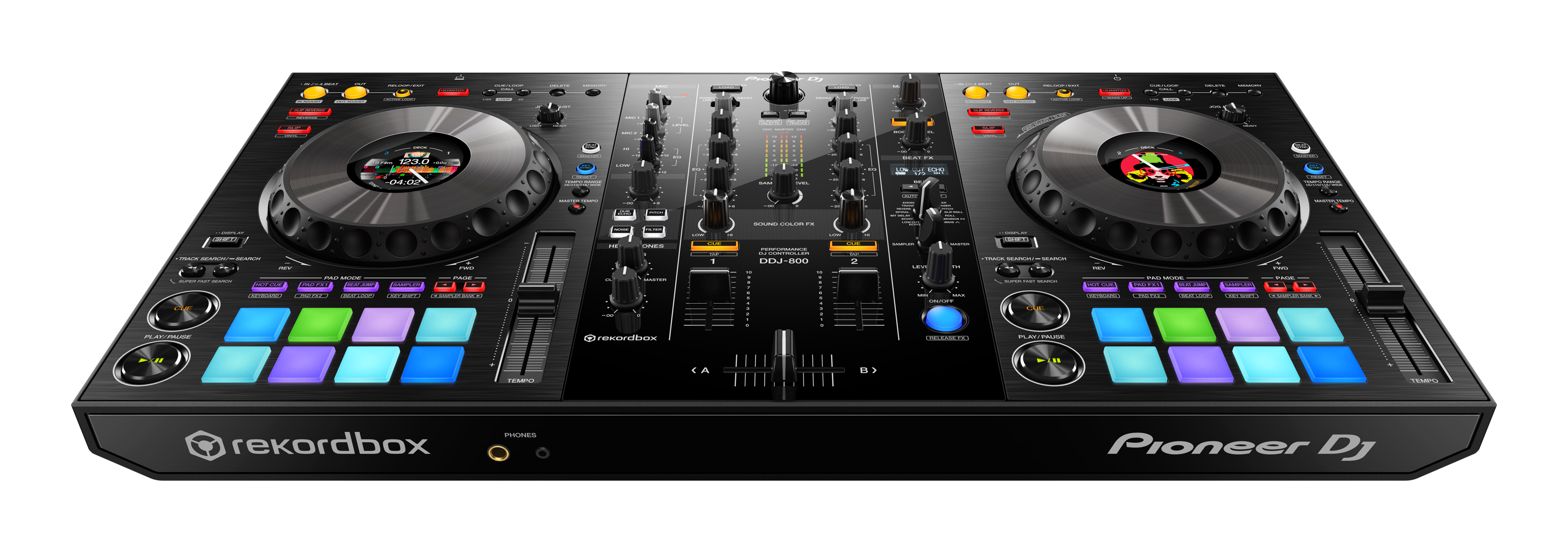 La console DJ a 2 canali DDJ-800 è un set-up professionale realizzato per accompagnarti dovunque. Questa unità portatile eredita il lay-out da discoteca nonché le popolari funzioni del DDJ-1000, compresi gli On Jog Display a colori, racchiudendo il tutto in un corpo più leggero.