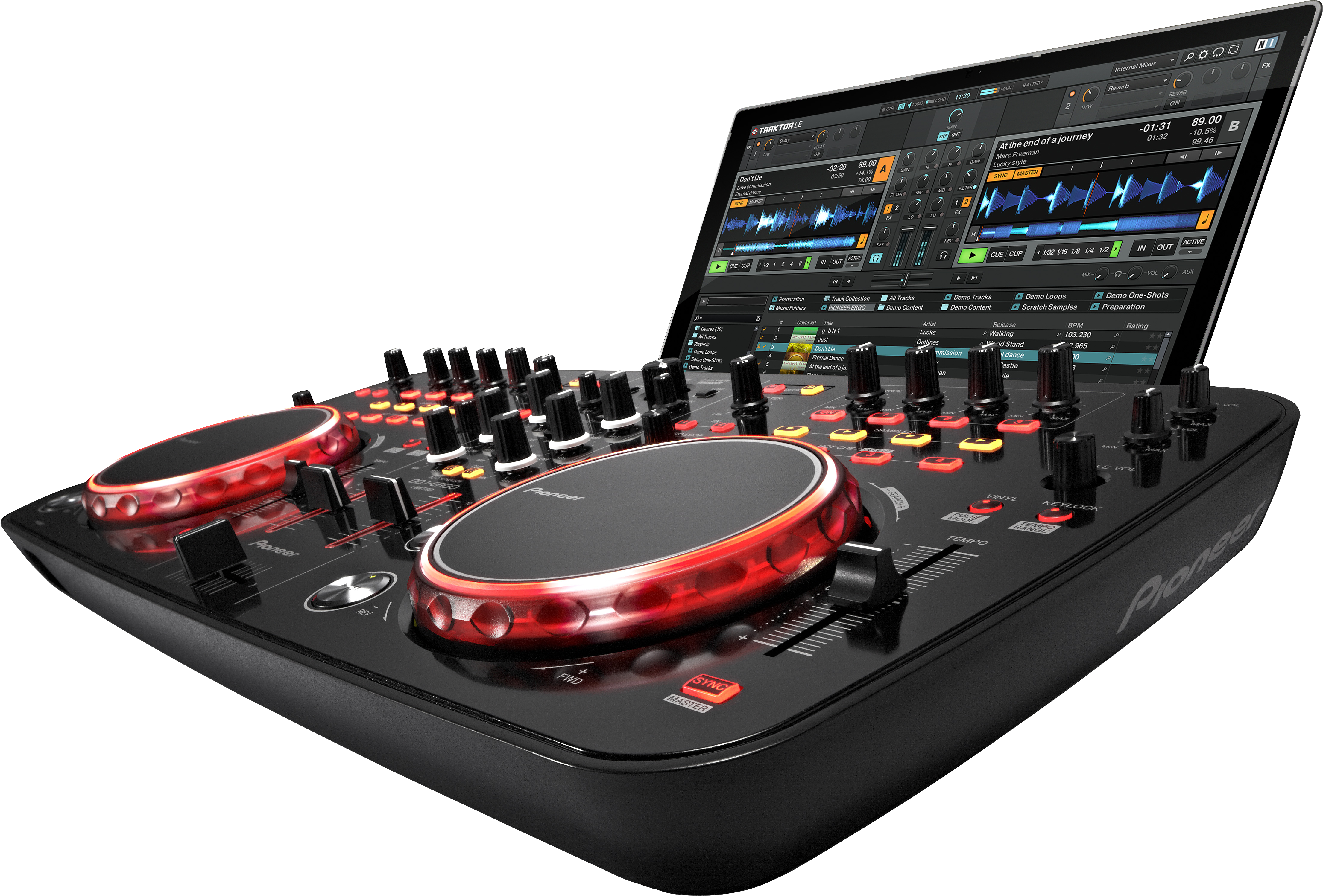 Beatgrid automatici, forme d’onda altamente dettagliate e un’interfaccia software che riproduce il controller, consentiranno di seguire facilmente il mix.