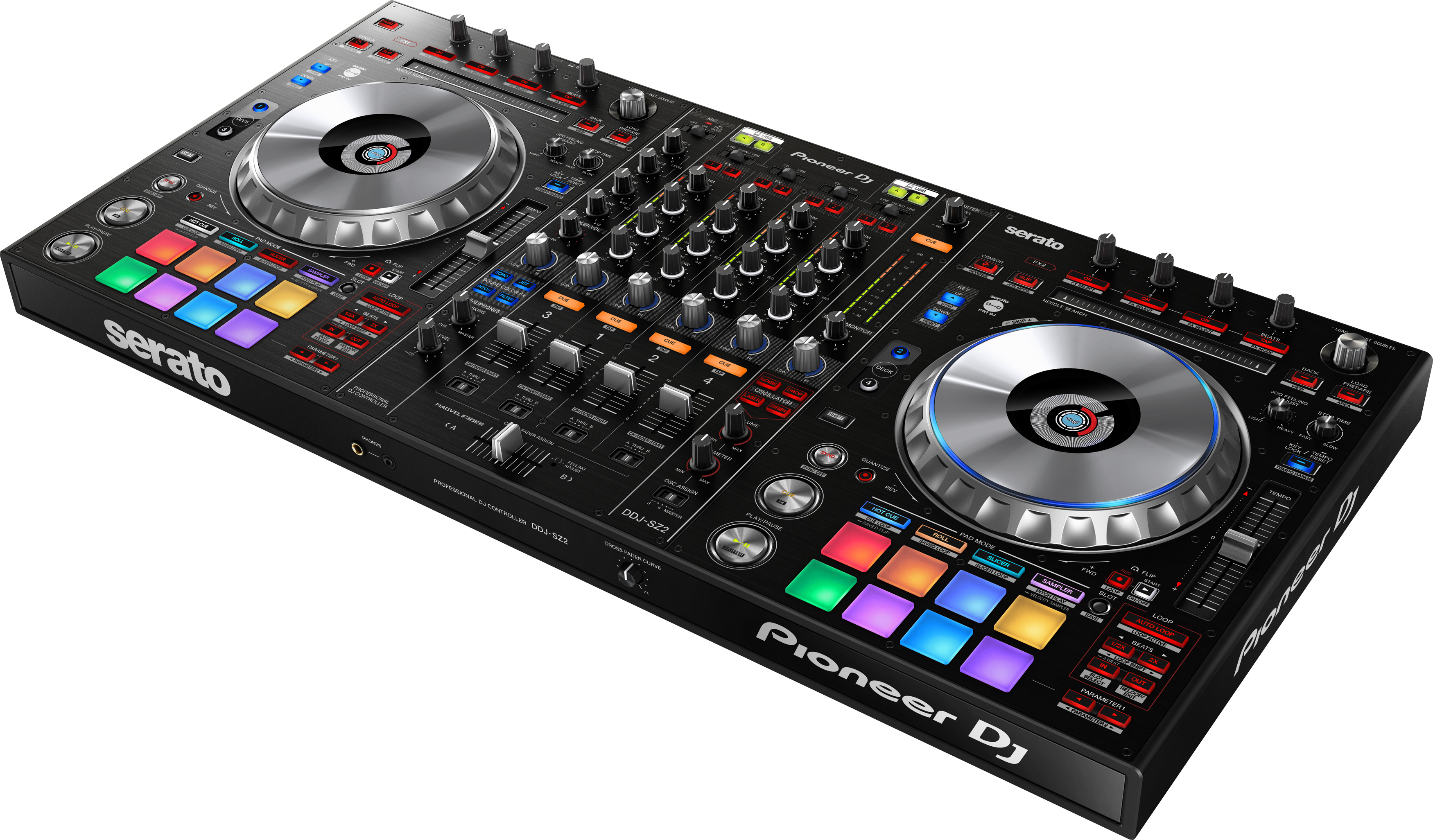 Il DDJ-SZ2 dà seguito alle solide fondamenta del suo predecessore, il modello di punta DDJ-SZ. Questo upgrade del nostro fiore all'occhiello per Serato DJ Pro ti permette di toccare con mano le ultime funzioni aggiunte a Serato DJ Pro, tra cui key shift, key sync, pitch play e Serato Flip. Abbiamo migliorato la latenza delle jog wheel per rendere lo scratching ancor più preciso e "responsive", mentre i performance pad multicolor ti offrono un feedback istantaneo sullo stato di riproduzione e le modalità dei pad.