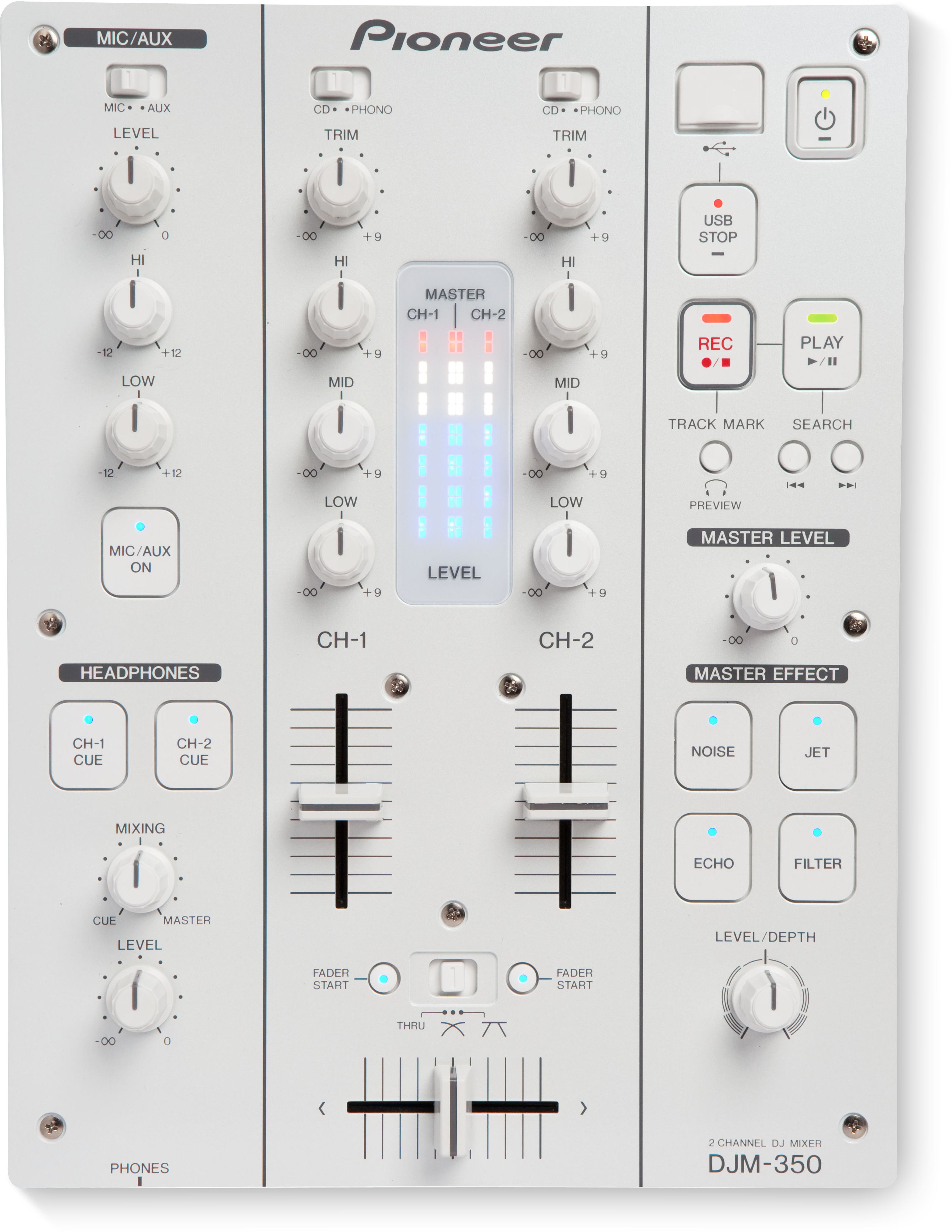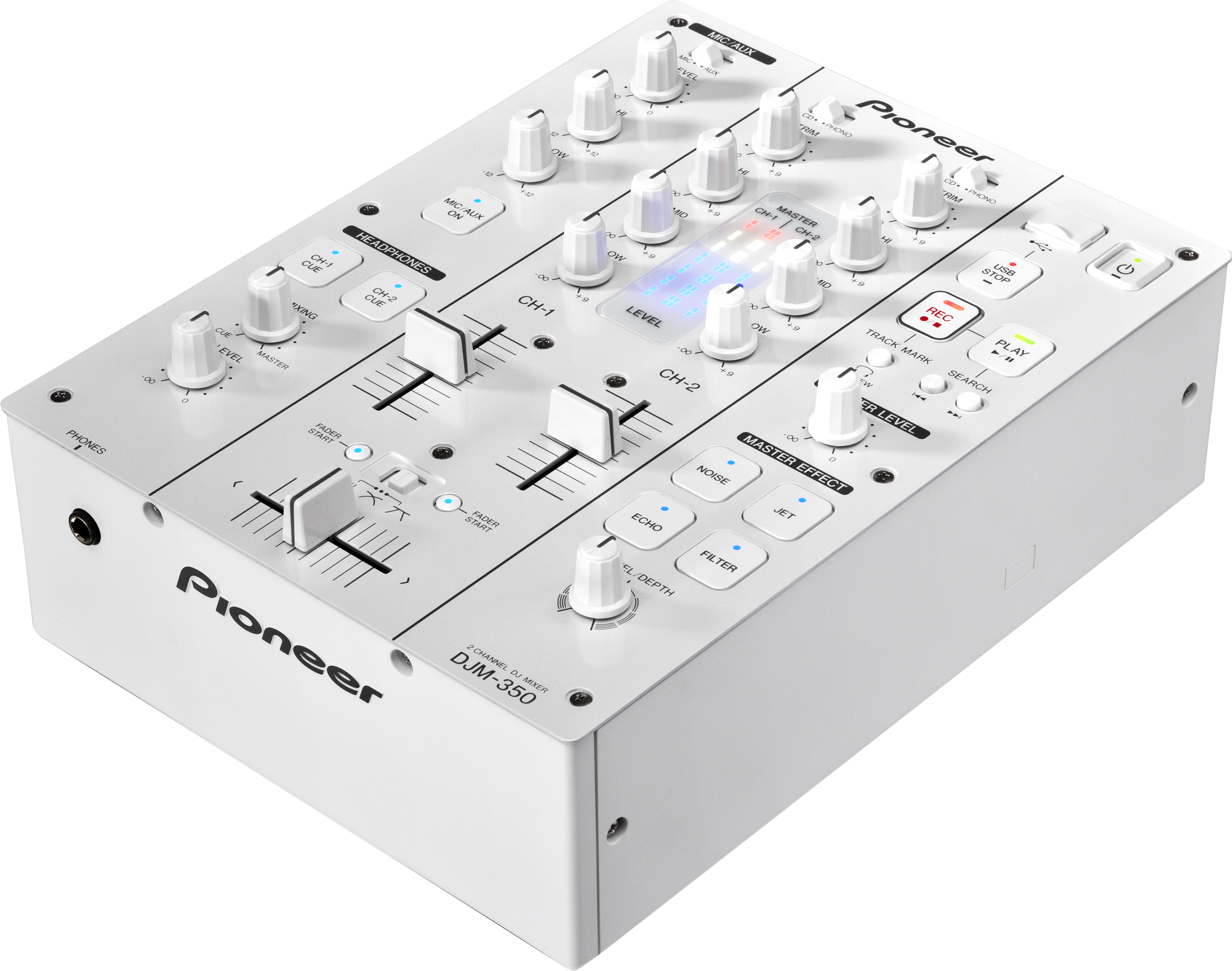 The DJM-350 is the perfect entry-level mixer, boasting features from our top-flight mixers – including powerful creative effects, USB recording and a MIC input with a 2-band EQ – without the top-flight price.