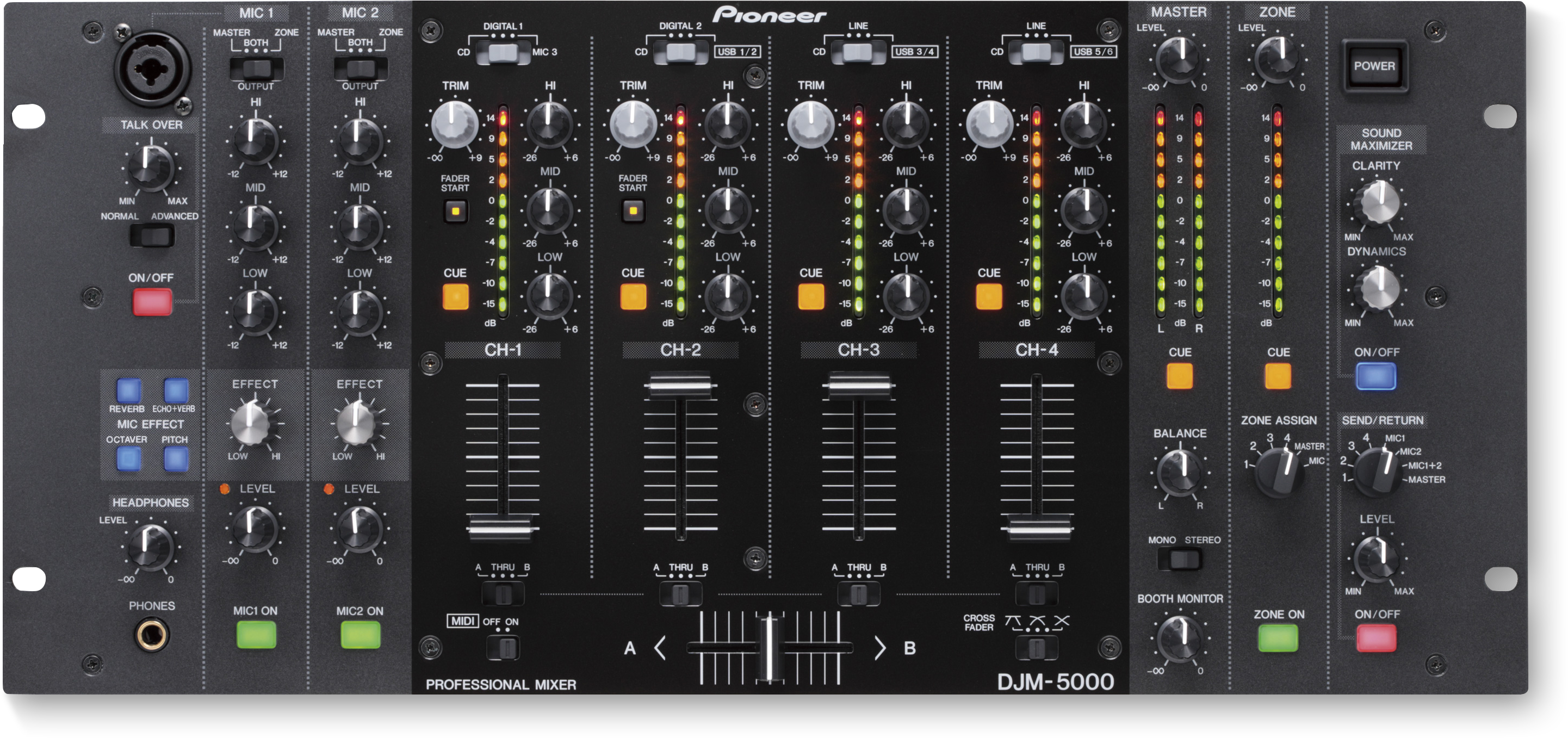 Abbinamento ideale per il nostro lettore MEP-7000, il modello DJM-5000 offre un suono da 96kHz/24 bit ed è totalmente compatibile con il protocollo MIDI.