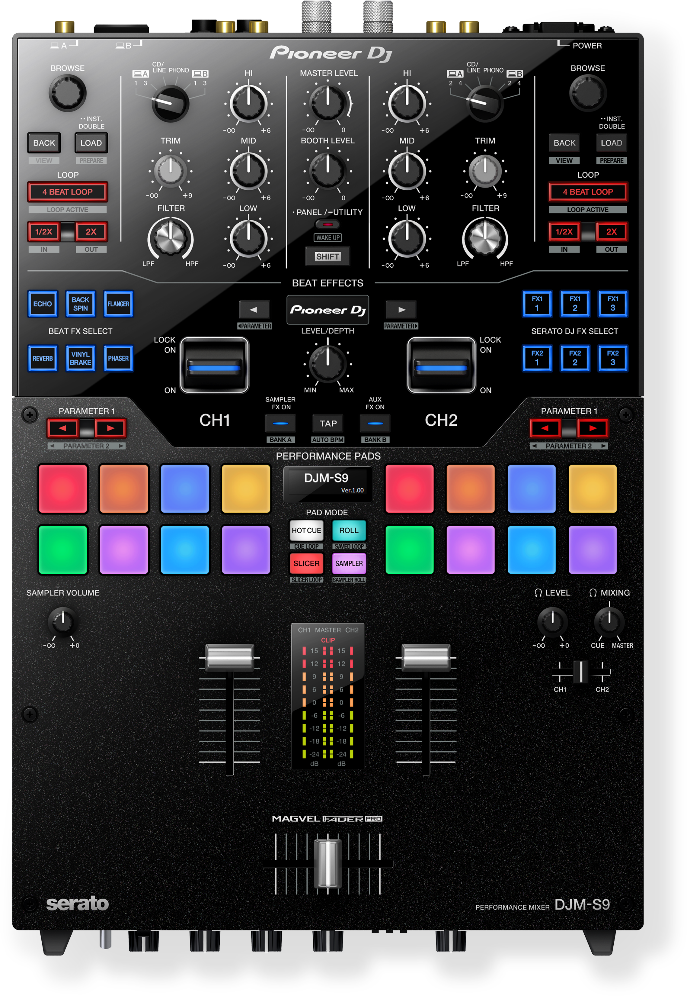 Ti presentiamo il DJM-S9, il nostro primo mixer da battaglia a due canali per Serato DJ Pro. Il crossfader Magvel Pro, interamente configurabile, insieme con i performance pad e i pulsanti FX personalizzabili, ti consentono di tarare il mixer sul tuo stile di DJing. Costruito per sopportare le performance di scratching più impegnative, il potente DJM-S9 eredita i circuiti audio di alta qualità del mixer digitale a 4 canali DJM-2000NXS, vera punta di diamante.