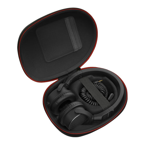 La custodia piatta, ideata per inserirsi facilmente nelle borse, protegge le cuffie dai danni in viaggio, offrendoti tutto lo spazio che ti serve per riporre i dispositivi USB e le schede SD.