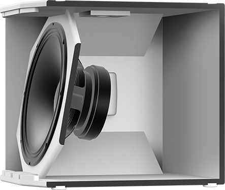 La resistente cassa in compensato di betulla tiene al sicuro il diffusore PA, mentre i manici posizionati con cura facilitano il transito e l'allestimento.