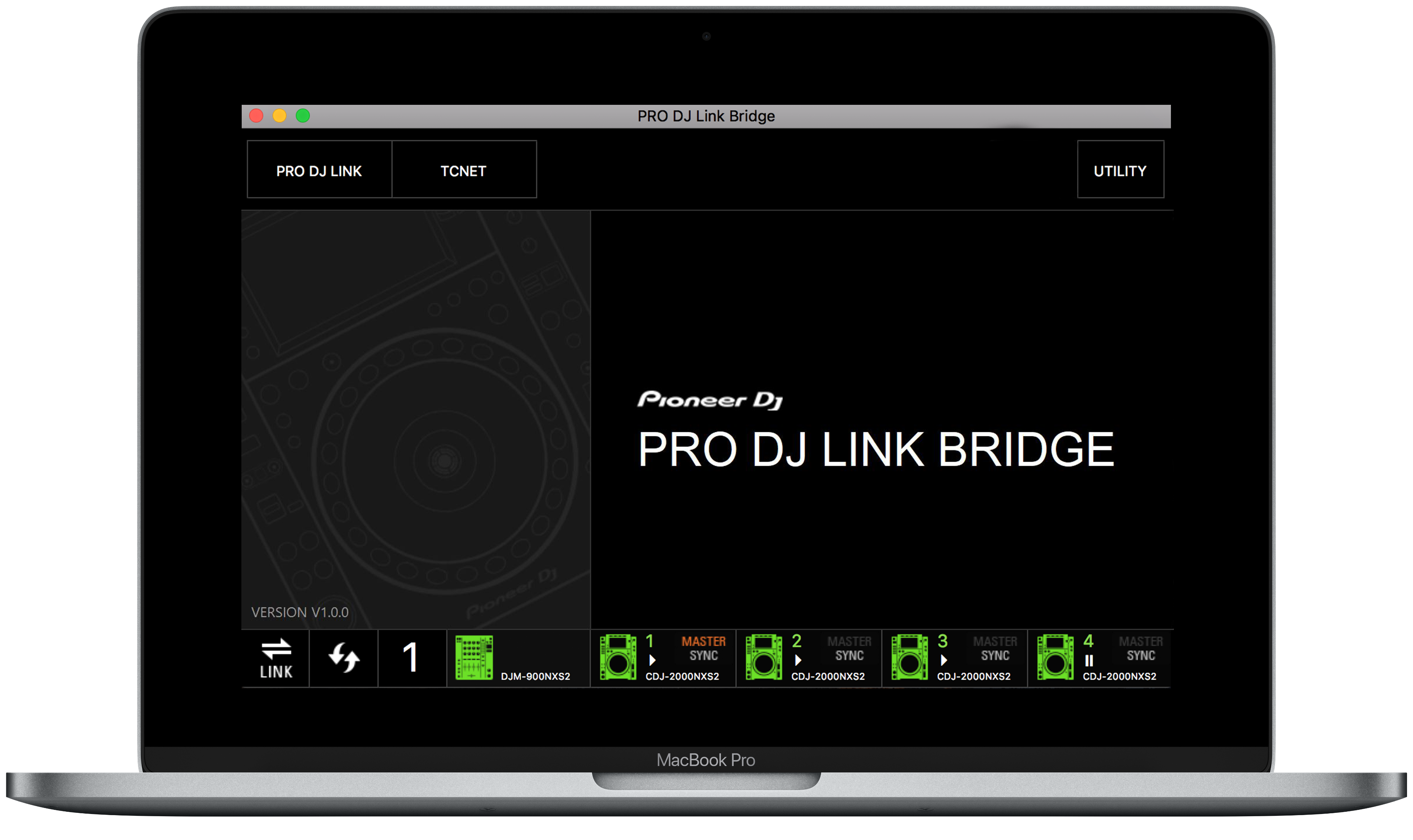 PRO DJ LINK BRIDGE è un'applicazione che ti consente di sincronizzare le luci, i video visualizzati e gli effetti pirotecnici con l'audio riprodotto con il nostro set-up professionale per DJ con i prodotti certificati di imprese con licenze.