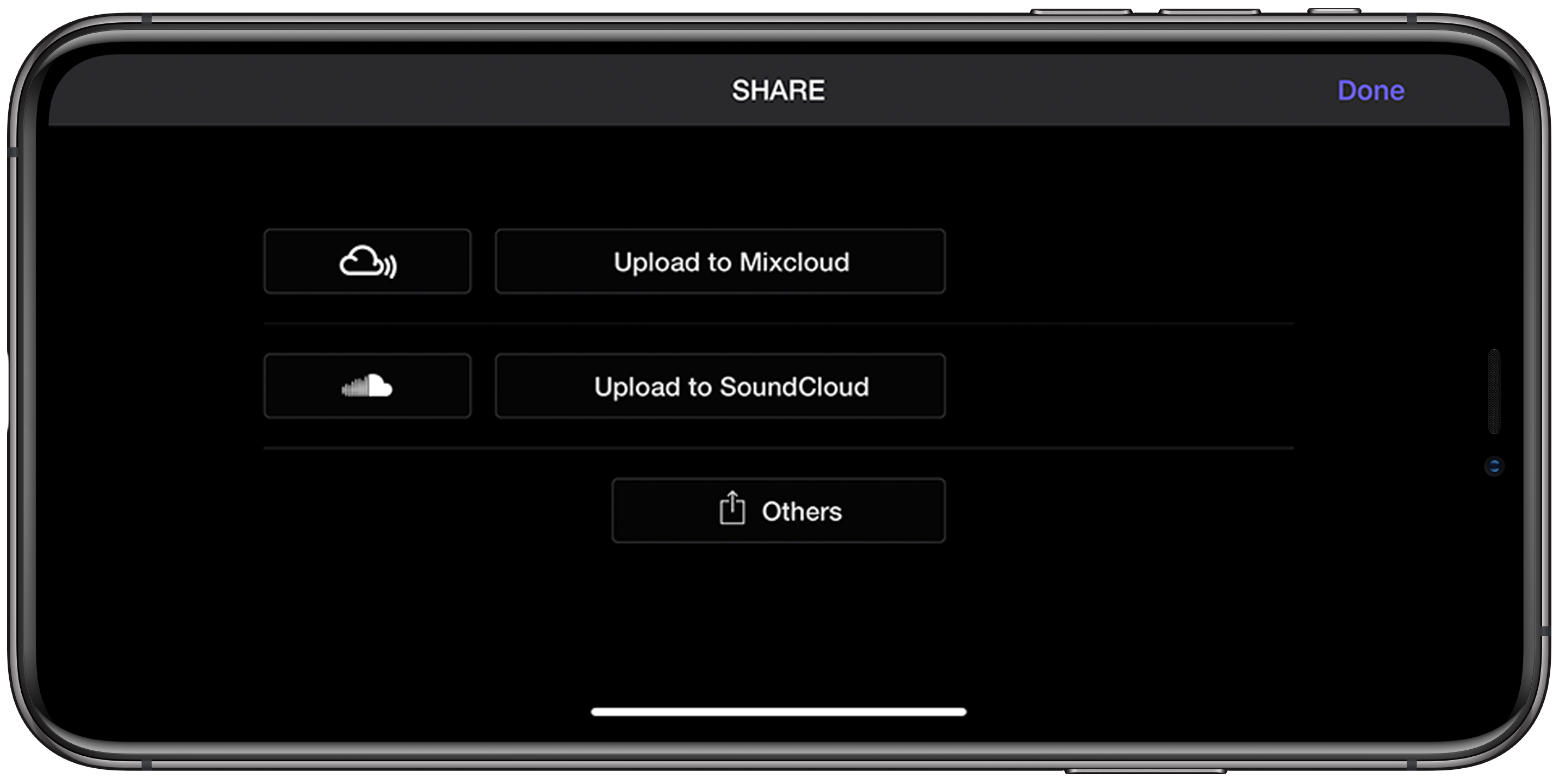 Condividi i mix creati con i brani della tua libreria iTunes online. Ti basterà registrare la tua creazione in WeDJ per iPhone e caricarla in servizi come SoundCloud e Mixcloud.