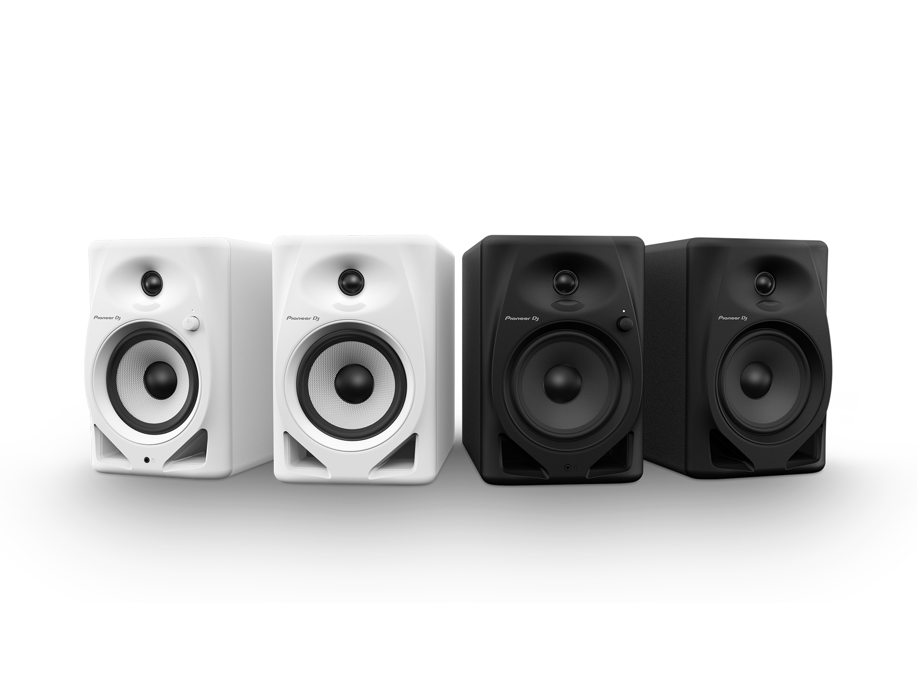 Je kunt ook je dj-set-up of thuisstudio via de RCA-ingang, ministekker en nieuw toegevoegde TRS-ingang aansluiten op de DM-50D-luidsprekers. En het wordt nog beter, want de volumeknop en de aansluiting voor de hoofdtelefoon bevinden zich op de voorkant. Snel en praktisch aan te sluiten en te bedienen dus. Bovendien kun je kiezen tussen een zwart en een wit model, zodat de kleur altijd perfect bij de rest van je set-up past.