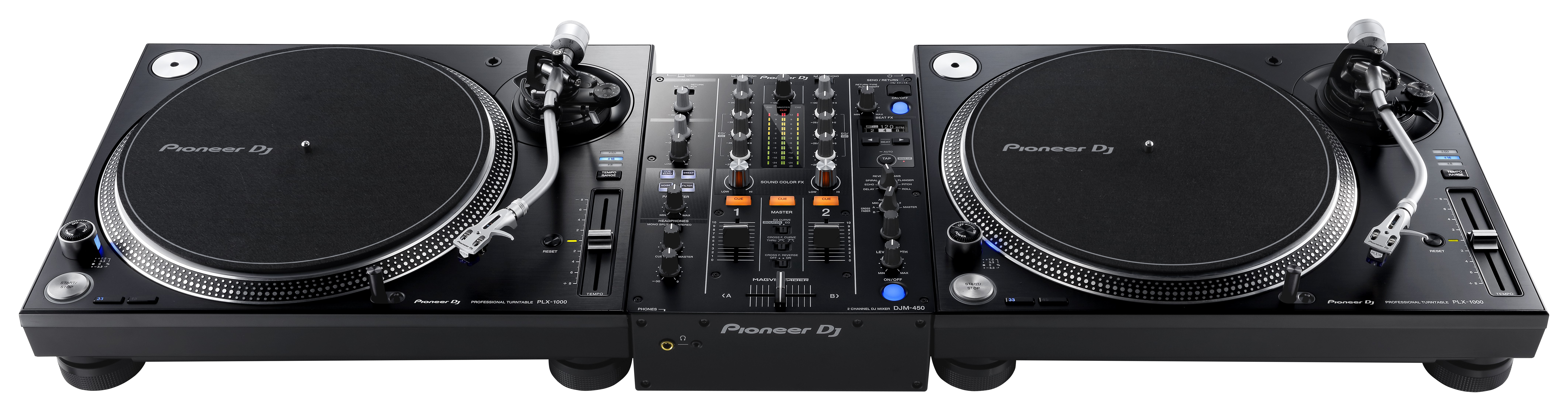 A new two-channel mixer is joining our range: the DJM-450. Inheriting features and design elements from the flagship DJM-900NXS2, the DJM-450 is the ideal mixer to partner with XDJ-700 multiplayers or PLX-1000 turntables to create a professional-style set-up. It comes bundled with licence keys for rekordbox dj and rekordbox dvs (worth a combined €248) so you can DJ with tracks stored on your PC/Mac when using turntables and our control vinyl (available separately).