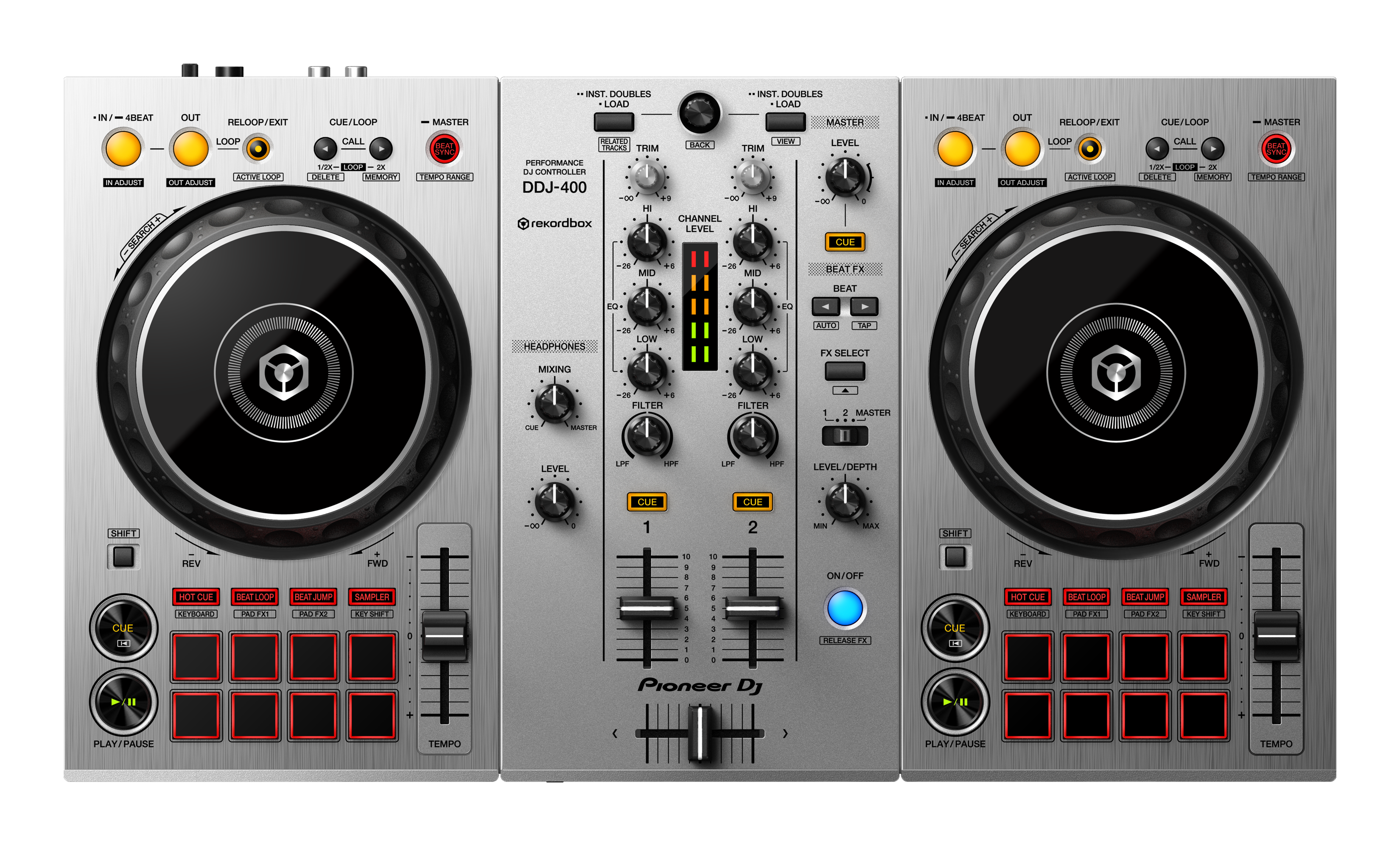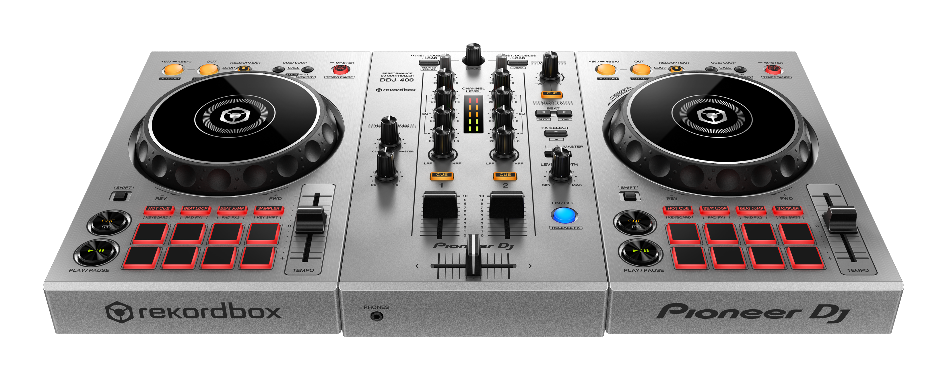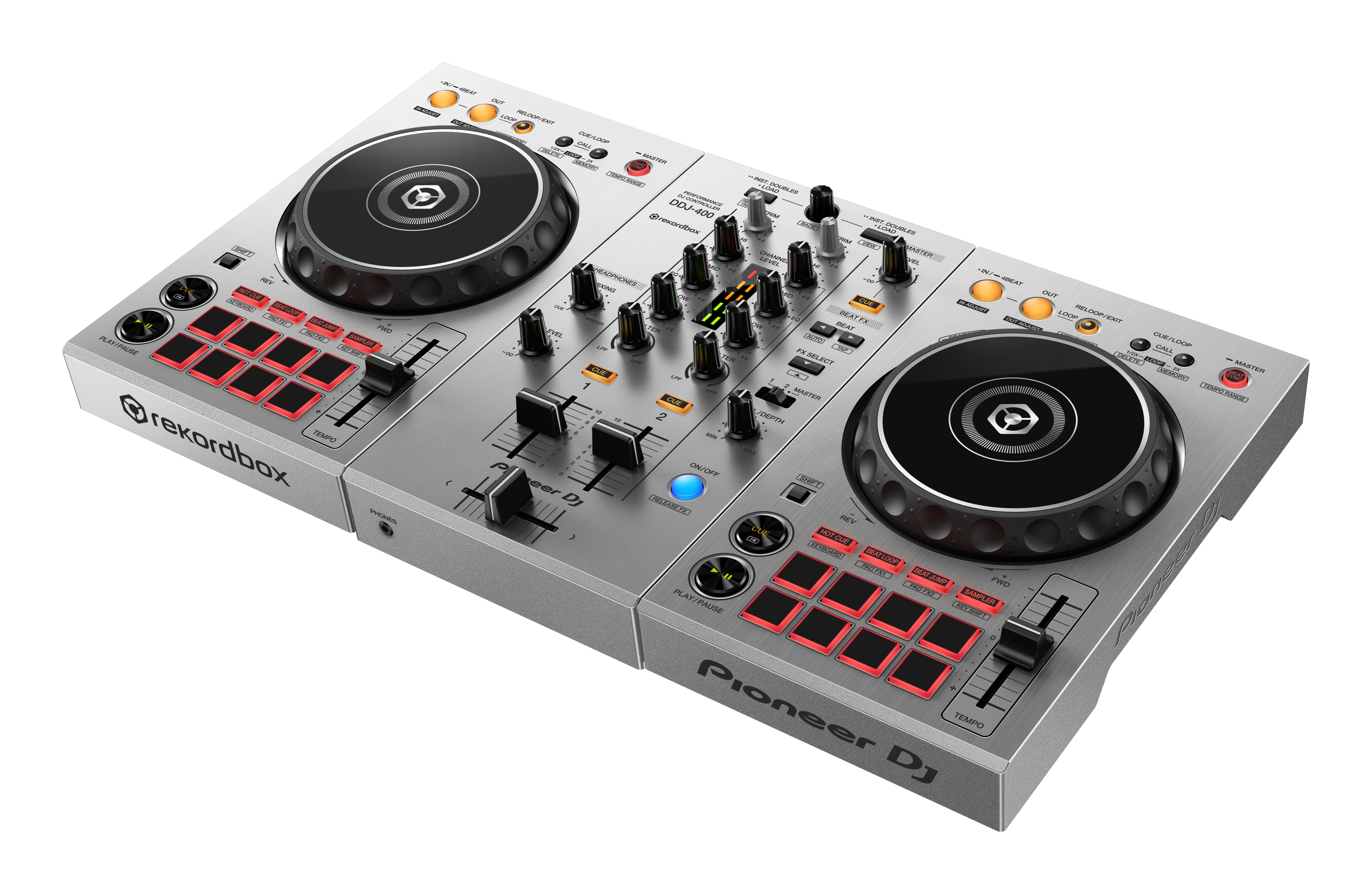Pentru a coincide cu această actualizare a software compatibilității software, lansăm și ediția limitată DDJ-400-S: o versiune de culoare argintie a controlerului DDJ-400, care face senzație printre DJ-ii începători încă de la lansarea sa din anul 2018. Noul model argintiu intens are un aspect identic cu unitatea originală neagră, ceea ce facilitează elementele de bază ale mixării, iar toate aceleași caracteristici sunt la îndemână. Prin urmare, dezvoltați-vă abilitățile în ritmul propriu și vedeți cât de departe puteți ajunge cu activitatea de DJ.
