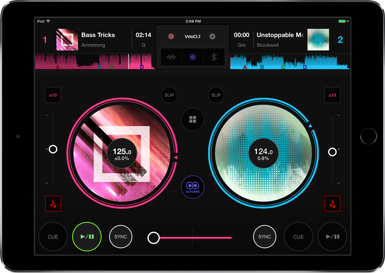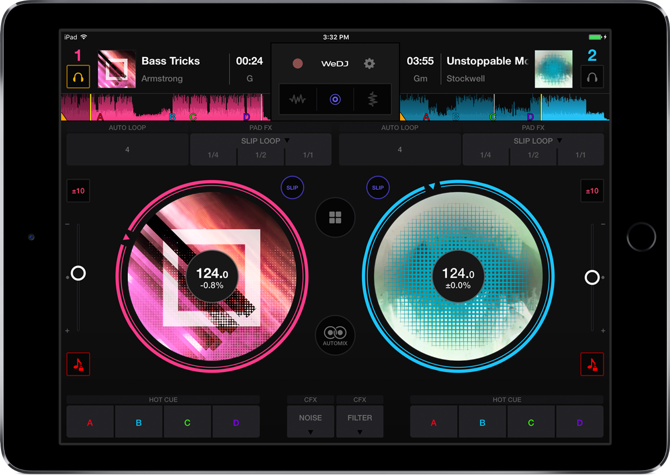 Pioneer DJ представляет WeDJ – приложение для диджеинга, с которым каждый может начать микшировать треки на iPad. С помощью цветного анимированного интерфейса вы можете управлять треками в плейлистах iTunes, используя разные эффекты, чтобы разнообразить свои сеты. Подключите iPad к колонкам, и вы сможете играть на вечеринках, подключите наушники и сможете практиковаться где угодно.