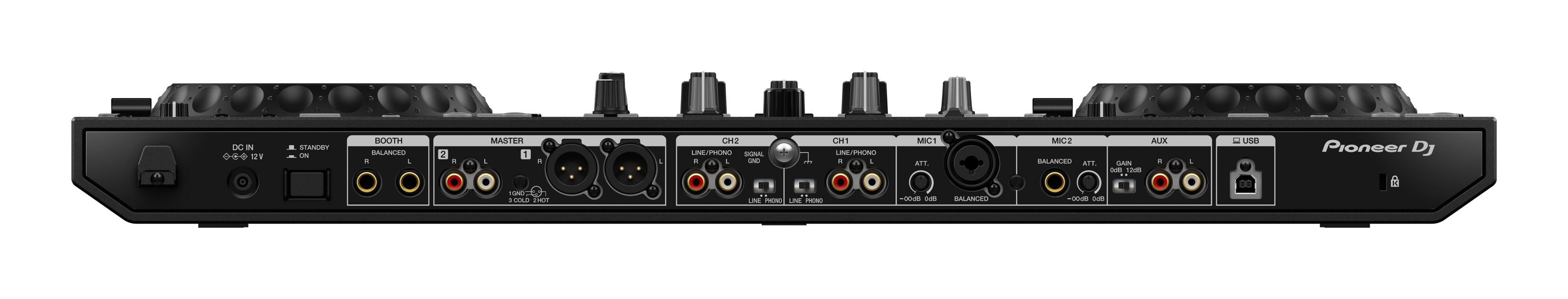 | Выходы | MASTER x 2 (XLR x 1,RCA x 1) BOOTH OUT x 1 (1/4-дюймовый TRS JACK) PHONES x 2 (1/4-дюймовый STEREO JACK x 1, 3,5-мм СТЕРЕО МИНИ-ДЖЕК x 1) |